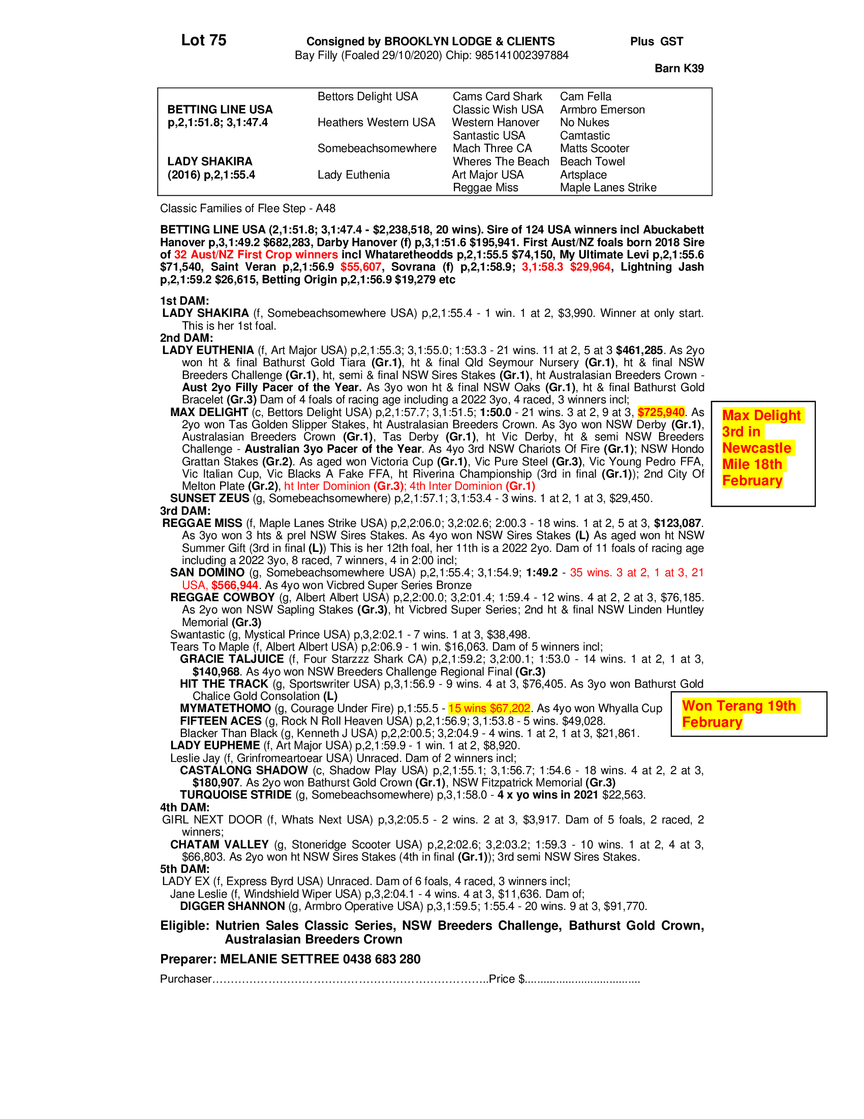 2020 FILLY OUT OF LADY SHAKIRA