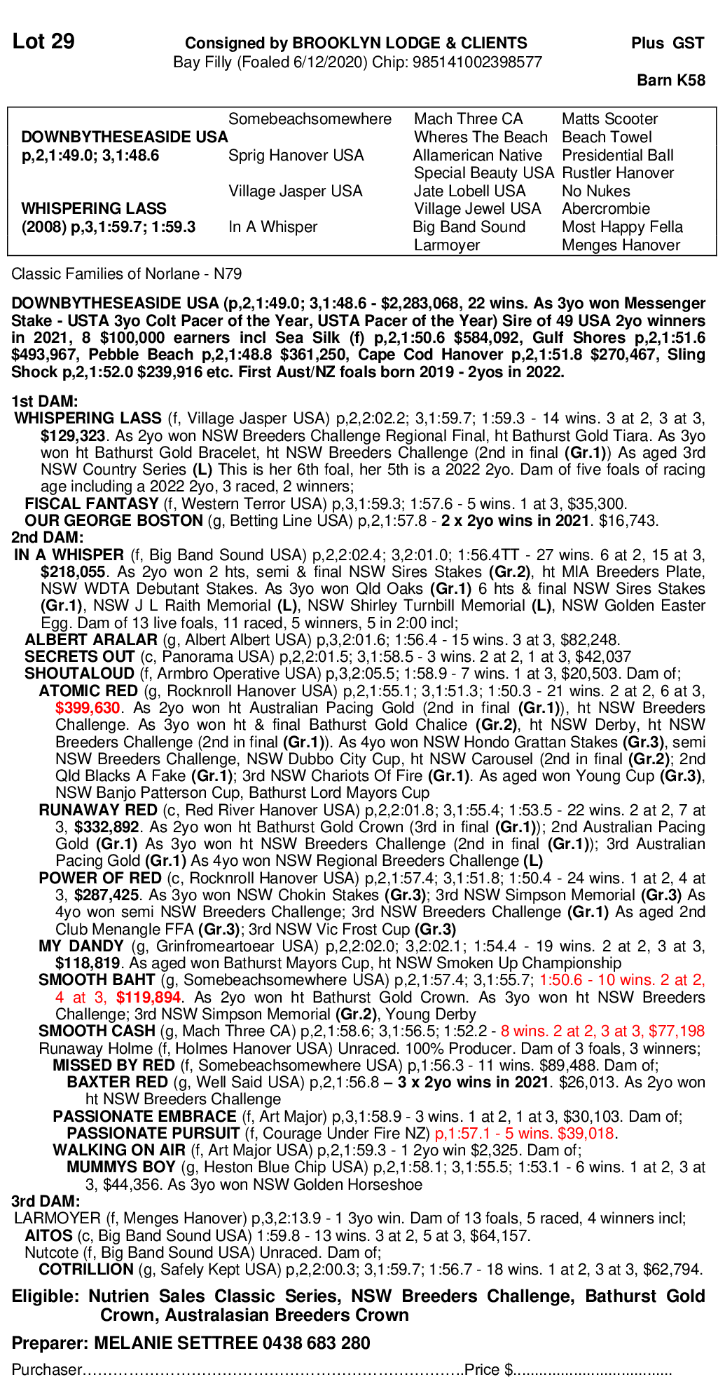 2020 FILLY OUT OF WHISPERING LASS