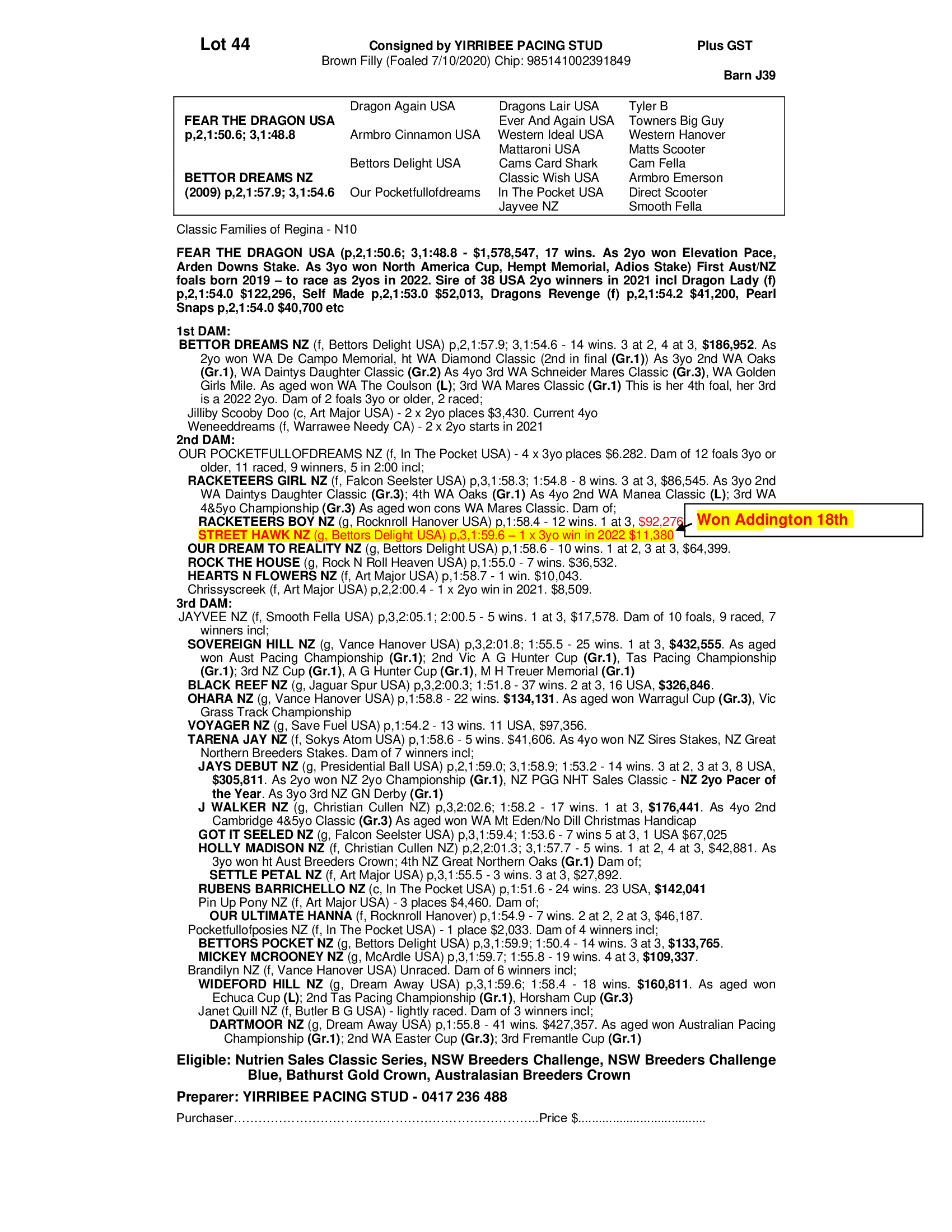 2020 FILLY OUT OF BETTOR DREAMS NZ