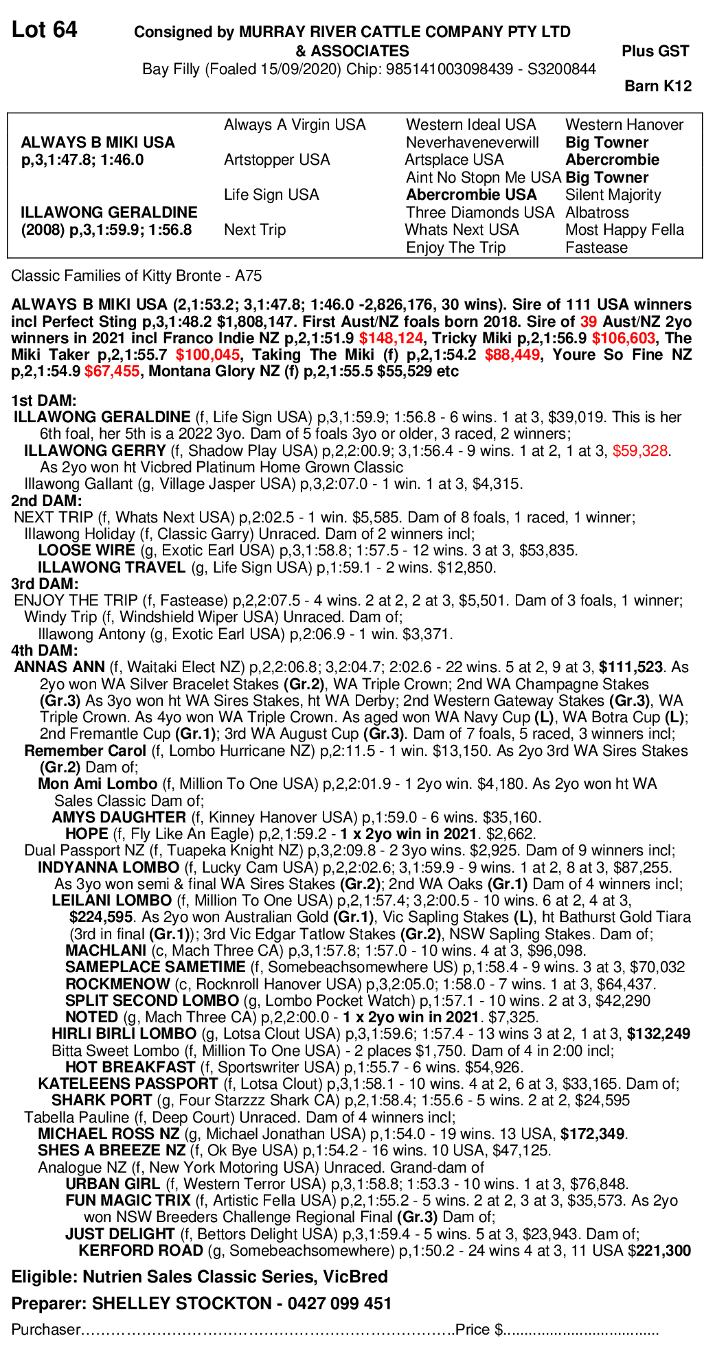 2020 FILLY OUT OF ILLAWONG GERALDINE