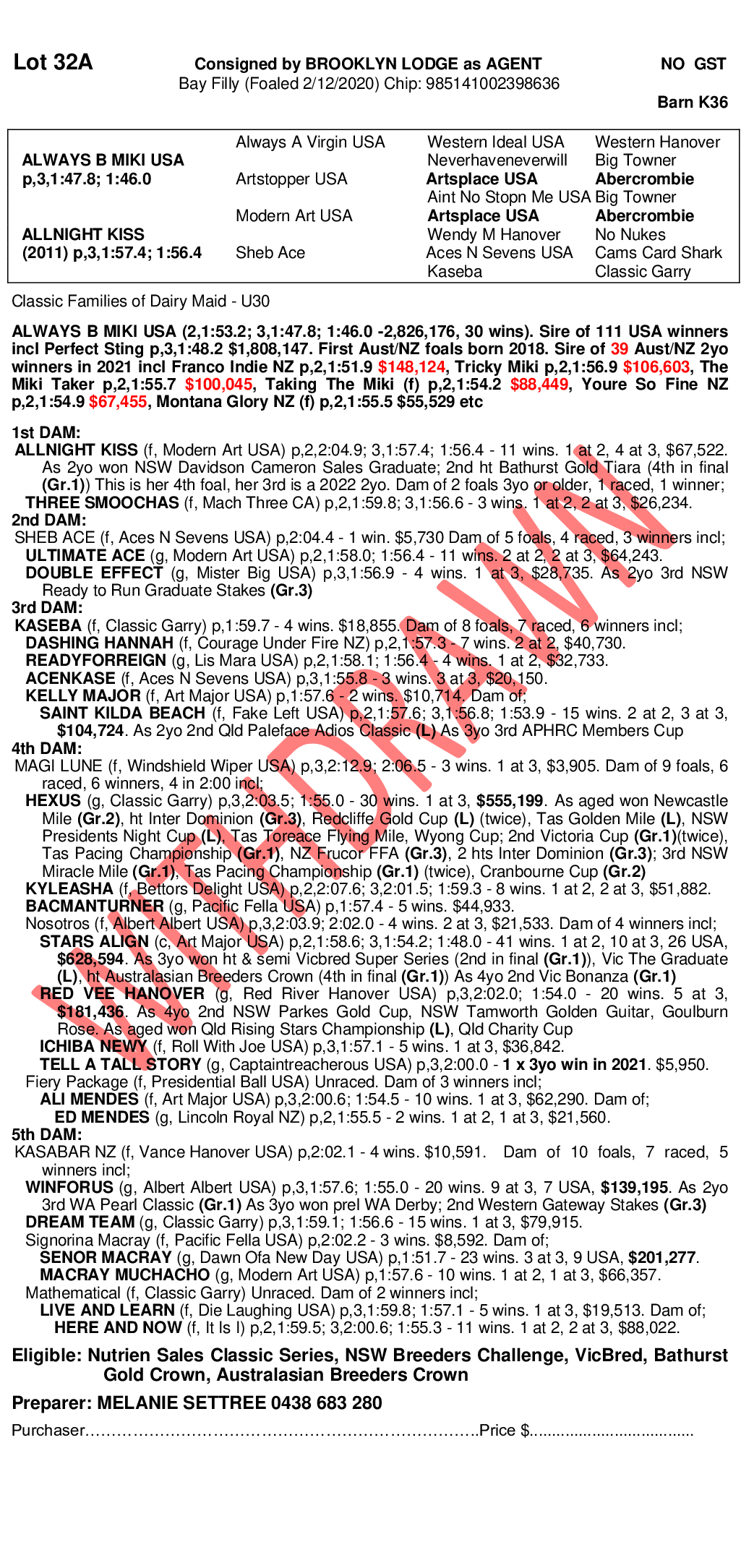 2020 FILLY OUT OF ALLNIGHT KISS