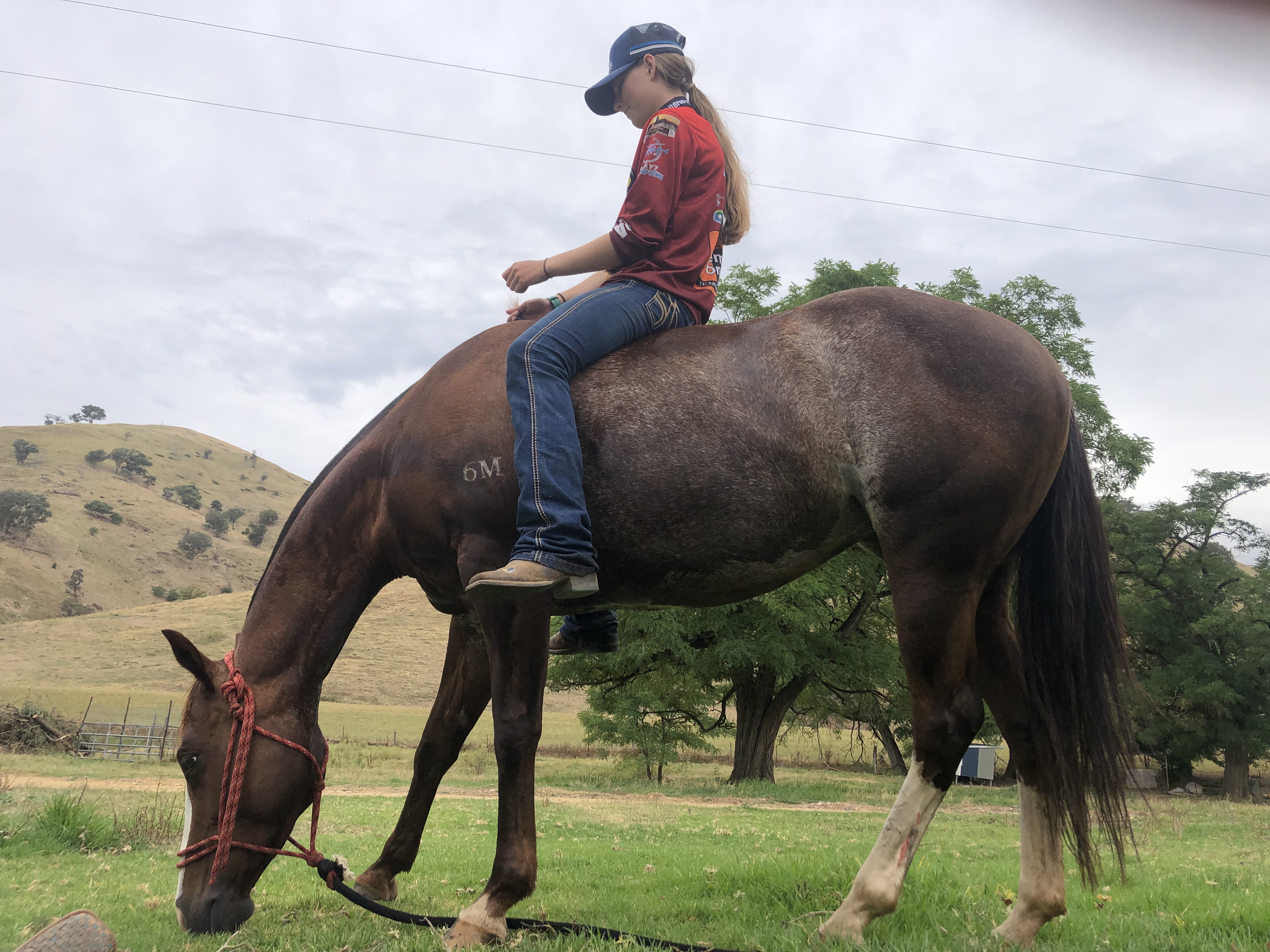 Beautiful well bred mare. Absolute pleasure to have around has had one foal due to injury to her hock however doesn’t affect her in anyway . Has competed in junior campdrafts and cutting clinics. Ridden by the whole family