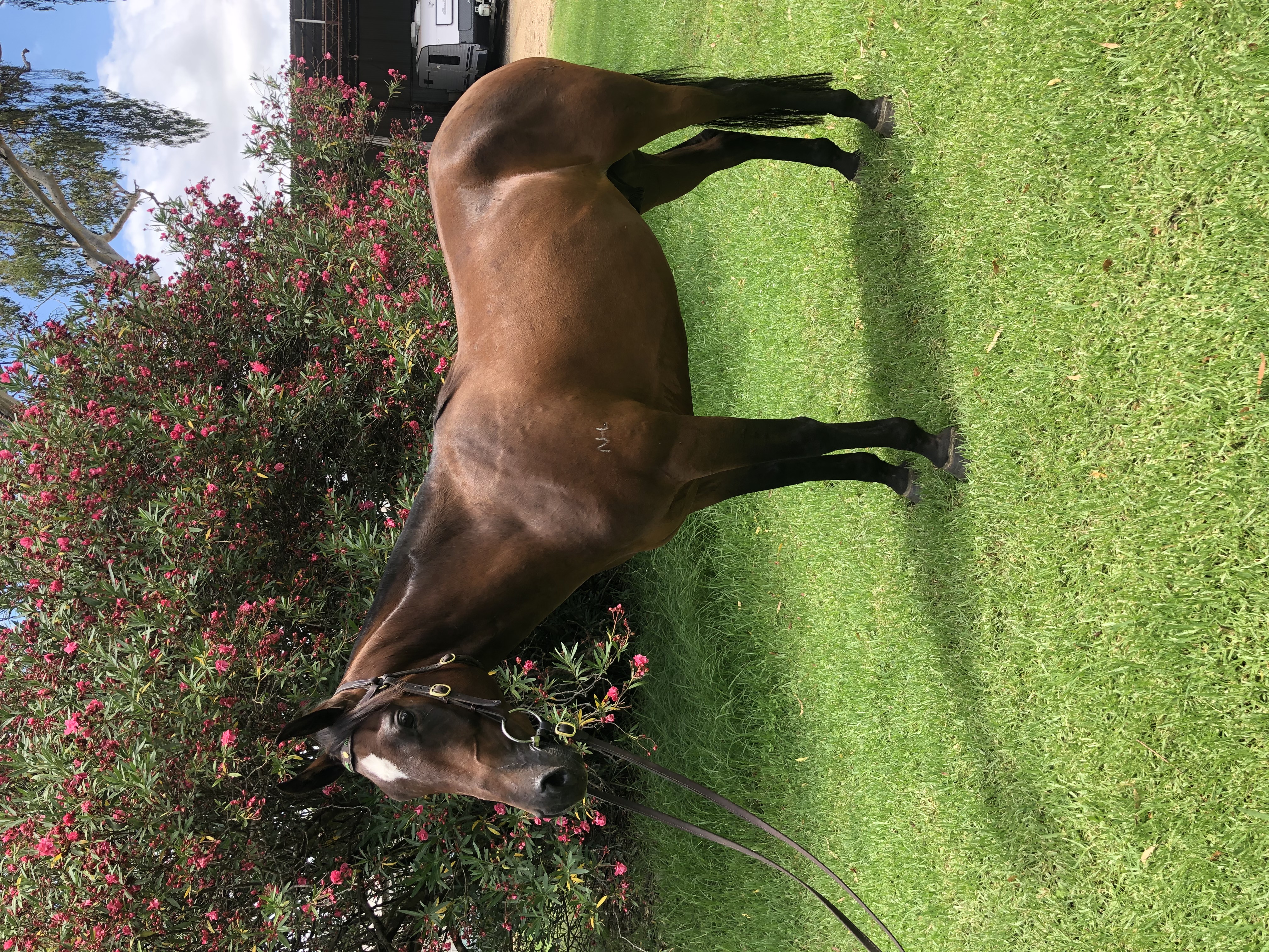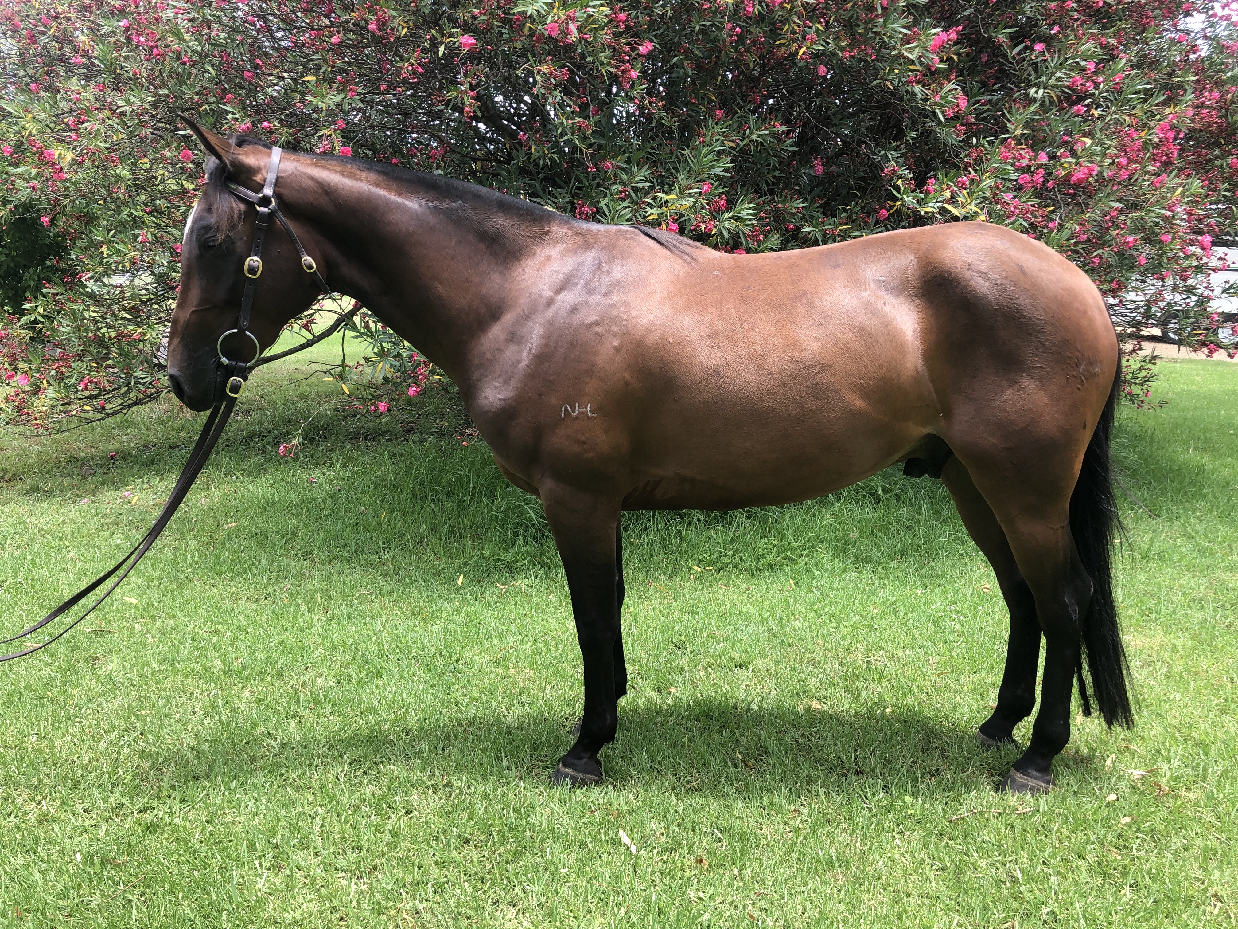 Has style, temperament, conformation and an outstanding pedigree. A young gelding with great potential. One of Nevlyn Josephs finest daughters, 'Dimity' was an outstanding performer. 'Acres of Impact' won many times at the highest level. Well prepared by Mark West.