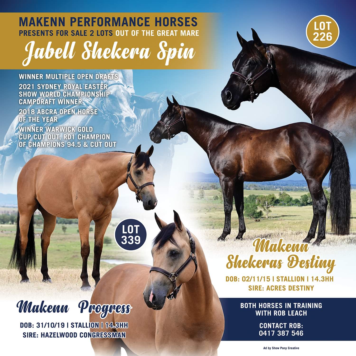 A 6 year old black stallion by ACRES DESTINY (dec) out of multiple open Campdraft winner JABELL SHEKERA SPIN. Rock solid foundation, not yet drafted but ready take someone to the winners circle.