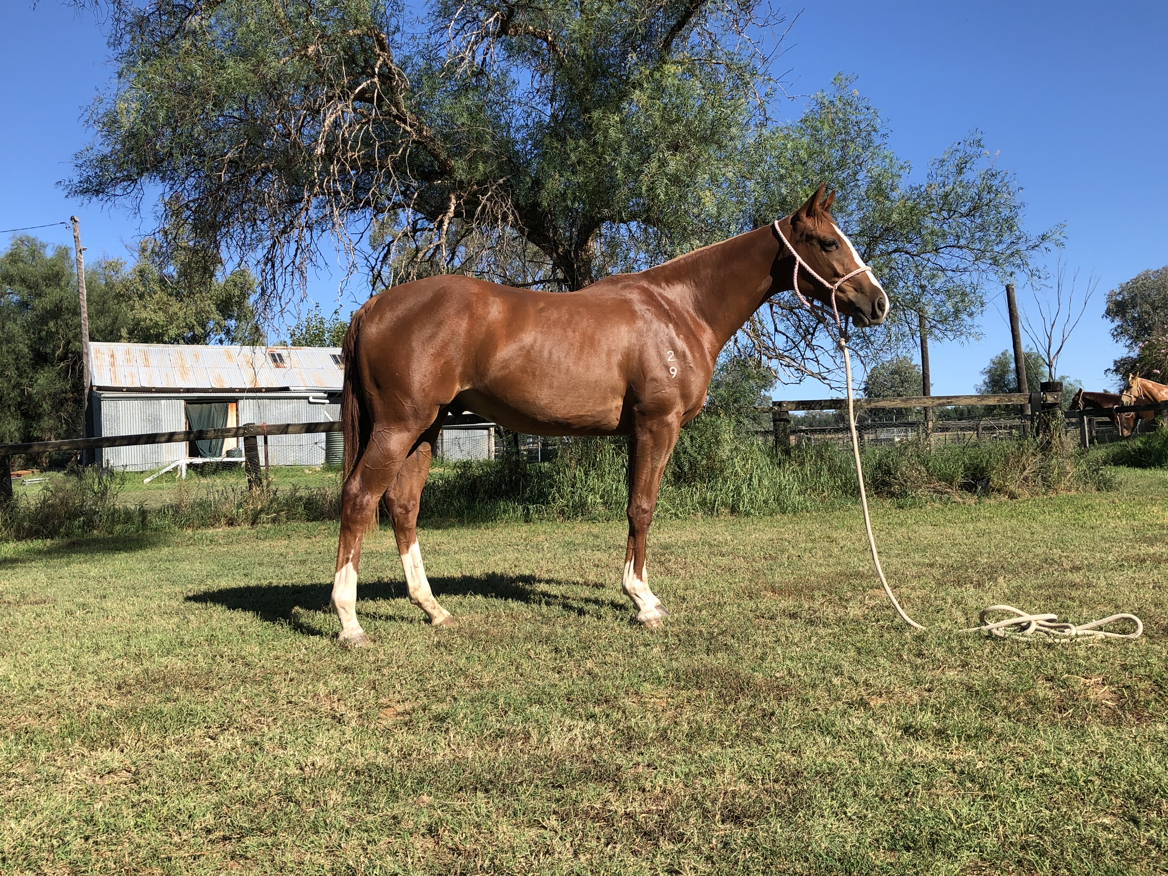 Flashy marked, beautiful, athletic free moving gelding that we think has a big future in front of him. Dam is the full sister to Yarranoo Musician, winner of the Warwick Stallion Campdraft.