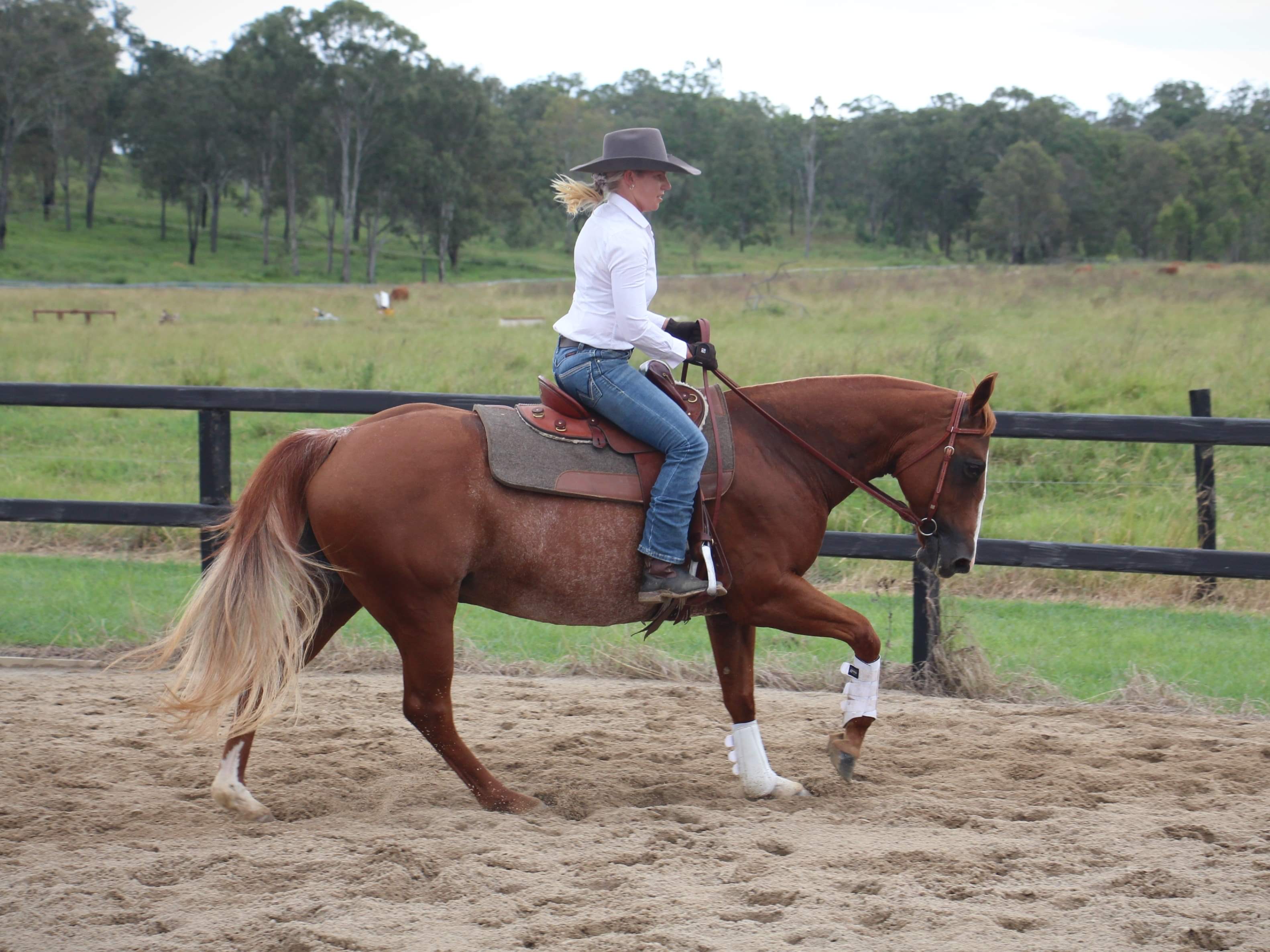 Been to cutting competitions, ridden by a lady at a challenge/ cowhorse events. Competed at showjumping and barrel racing. Been campdrafting and won a couple of cutouts.
