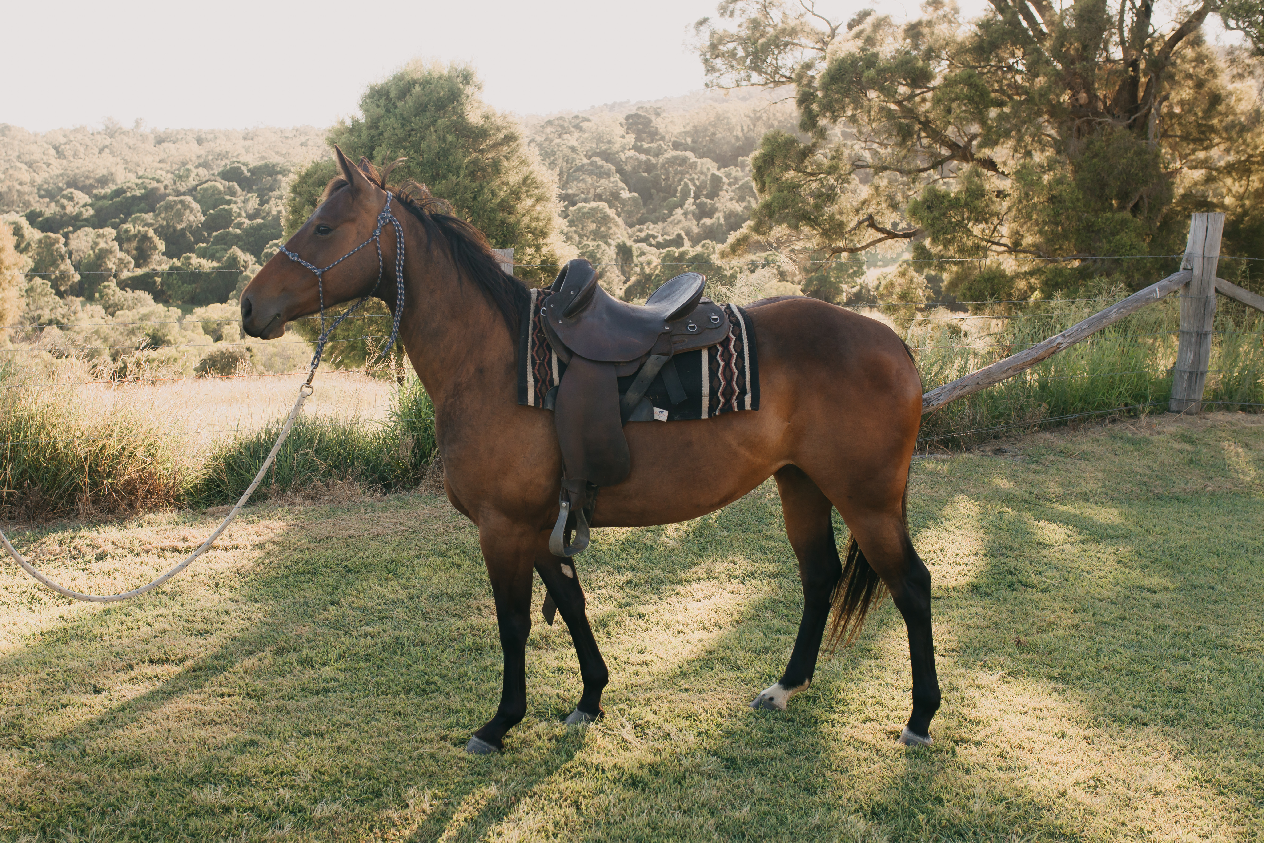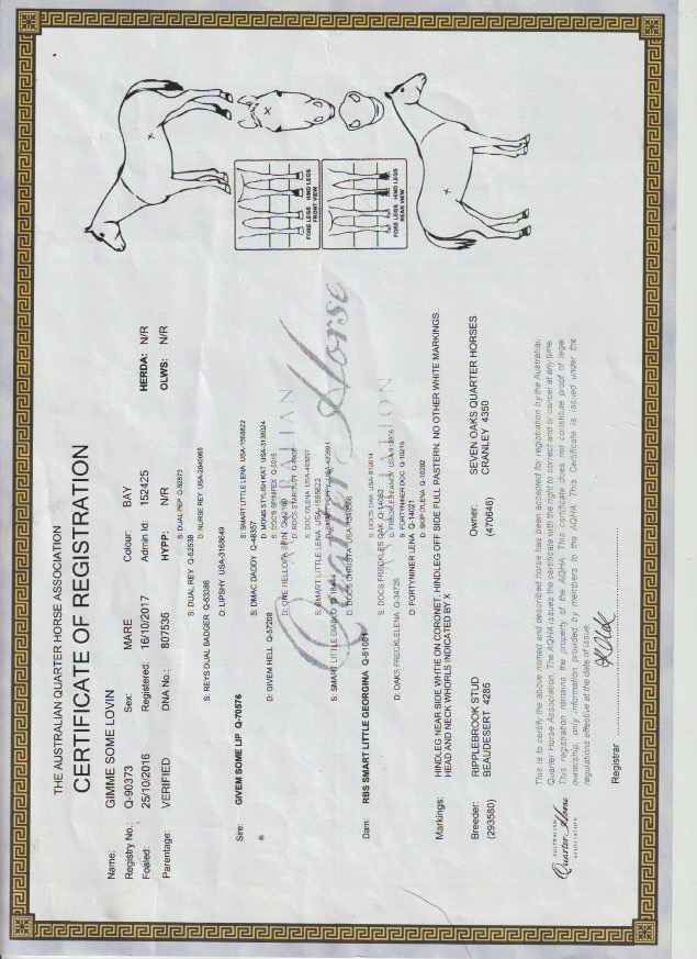 Beautiful mare with a great pedigree. She is good on her feet, has a good soft mouth and will work off your seat and leg aids. She has been used mustering and has had plenty of outside riding.
