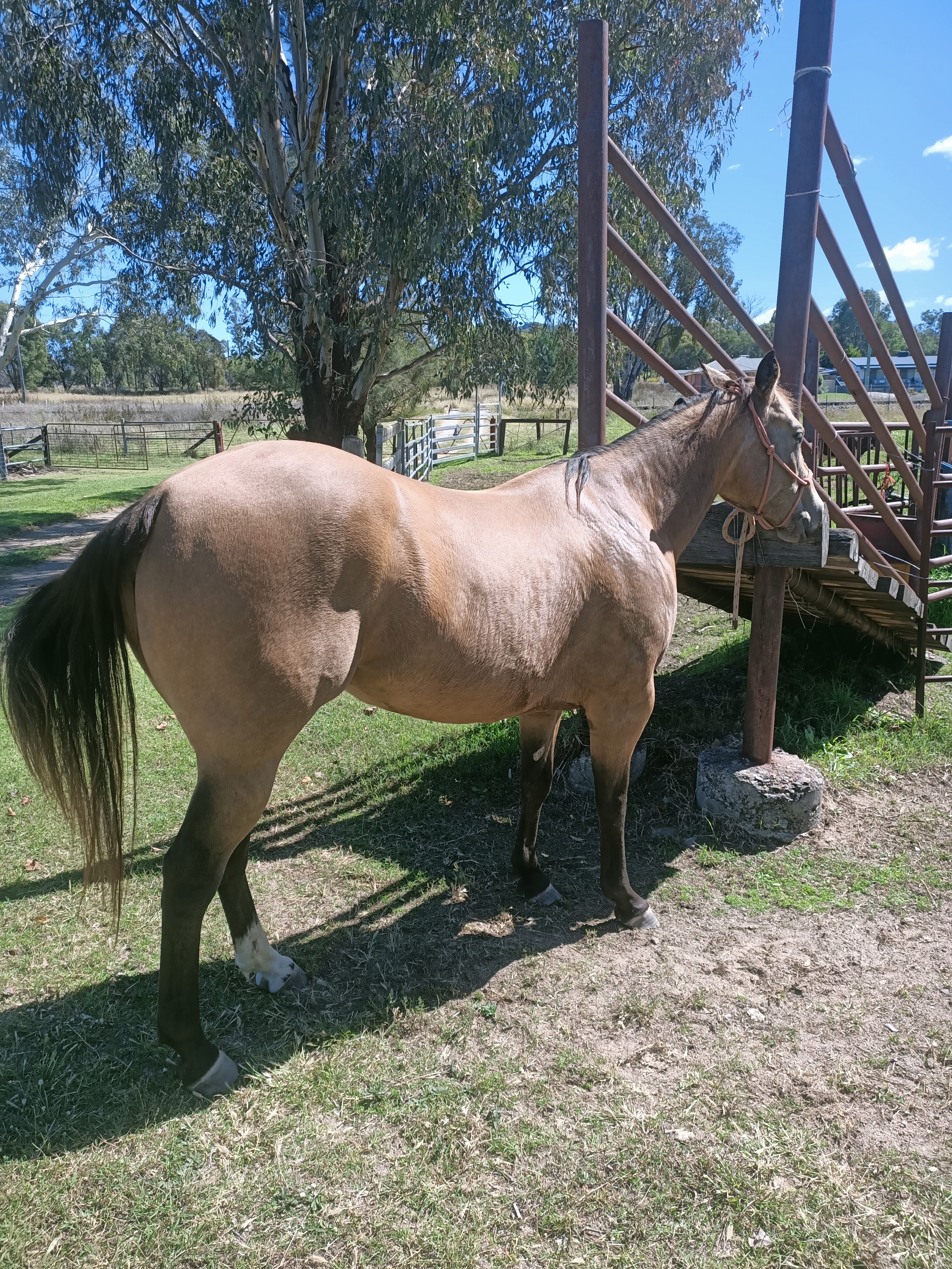 Athletic mare ready to put on the truck and draft. Solid foundation and cowy.