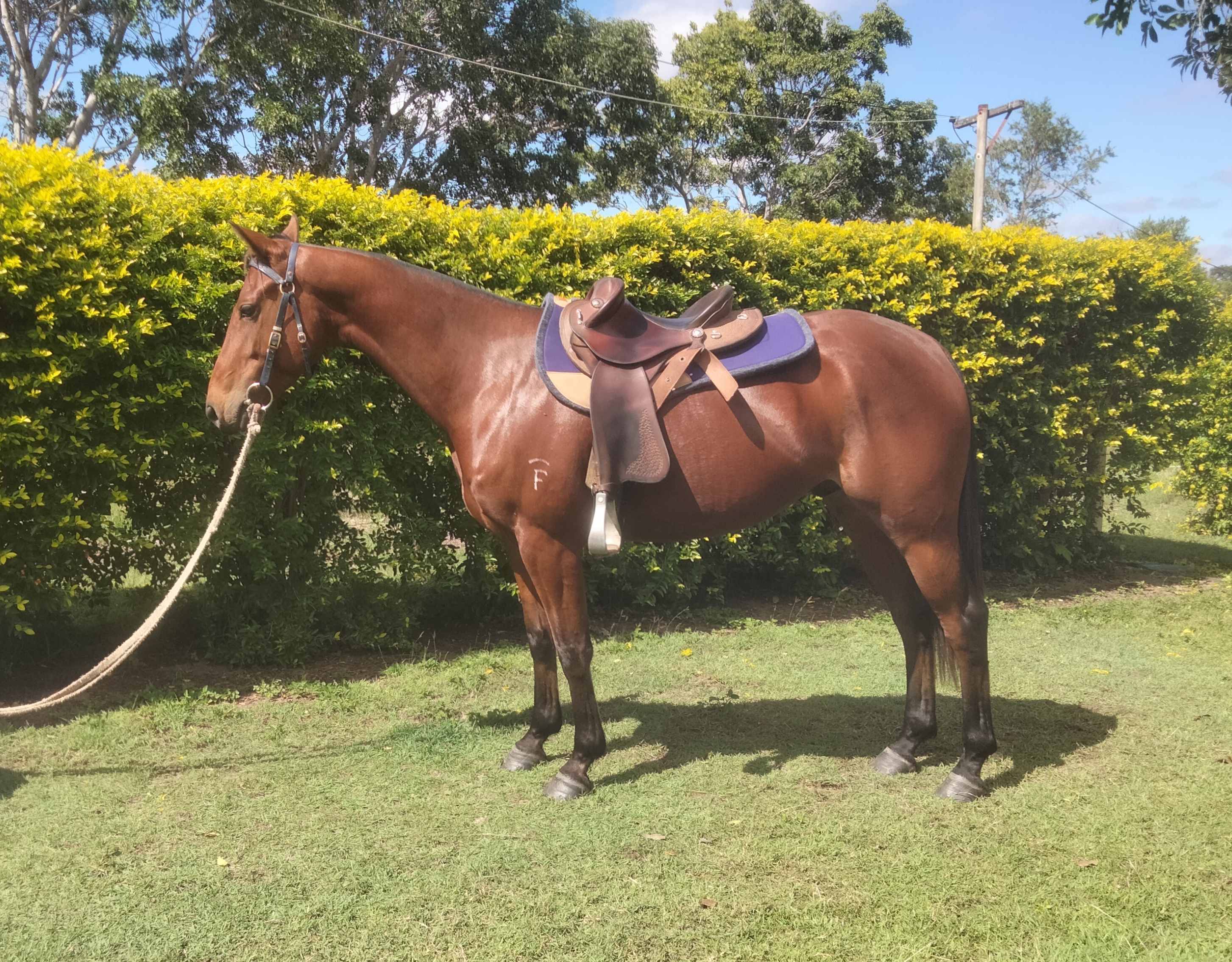 Smooth, free moving gelding. Had plenty of big days mustering. Will have had futurity start by time of sale, ready to go on with.