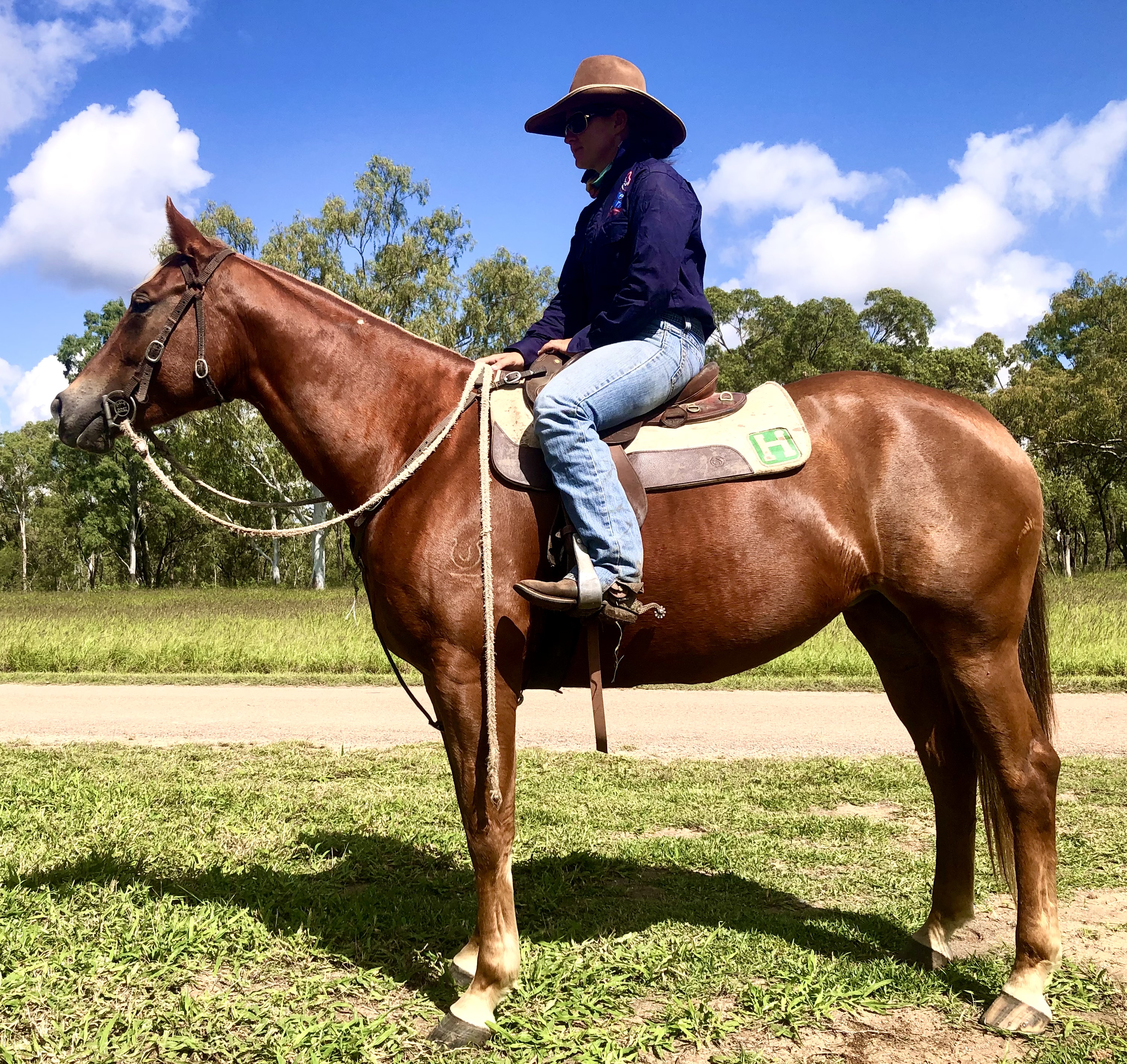 Big attractive smooth going mare, good after spell, done miles of mustering, drafted last year, set ready to go on with for the Campdraft or Challenge family. Ridden by a lady.