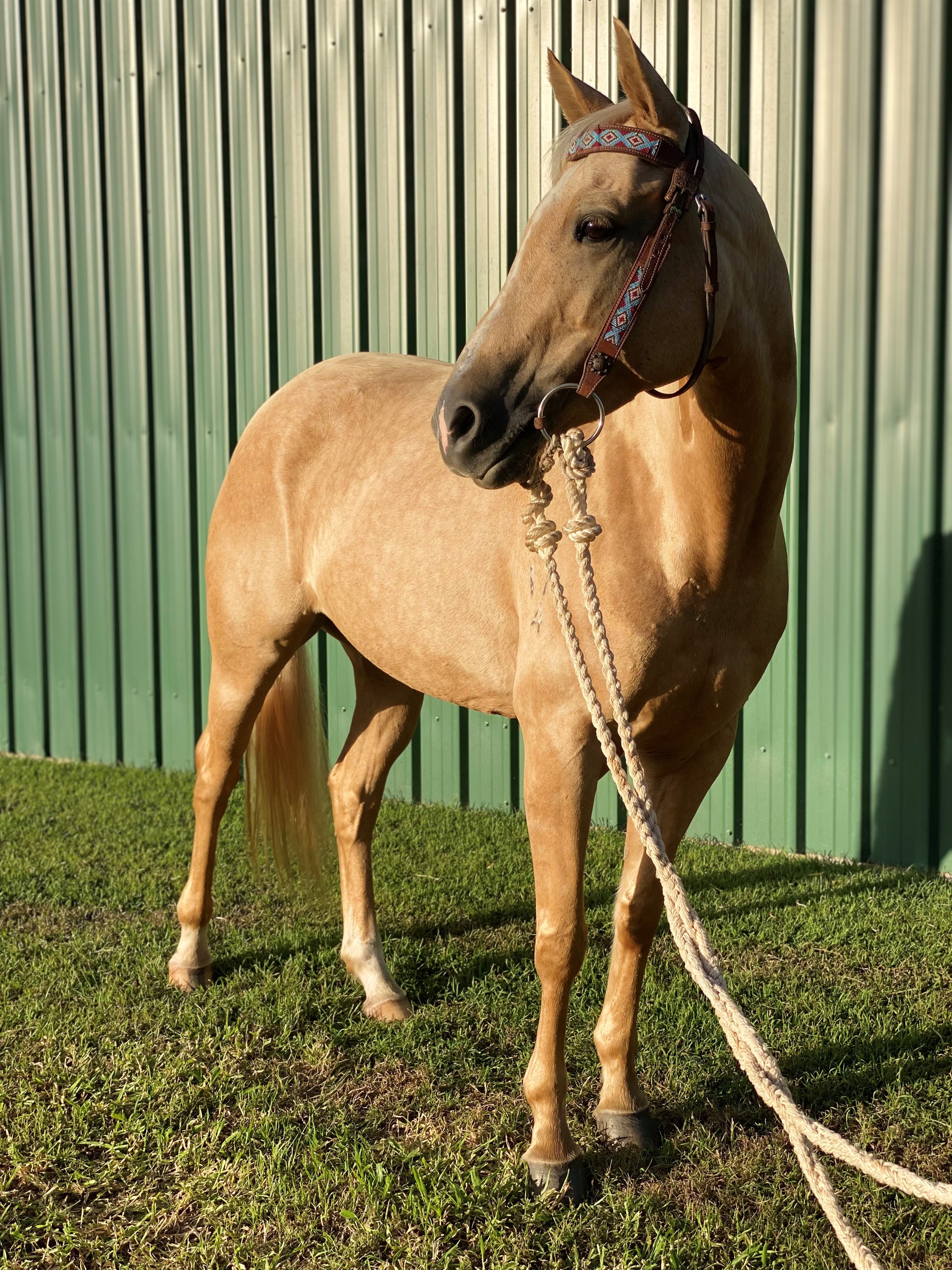 Hollywood is a stylish Palomino mare by Mabo. Very athletic & cowy with plenty of mustering miles. 6 months training with Jon Templeton in the lead up to Nutrien. Ready to put on the truck & excel in any discipline.