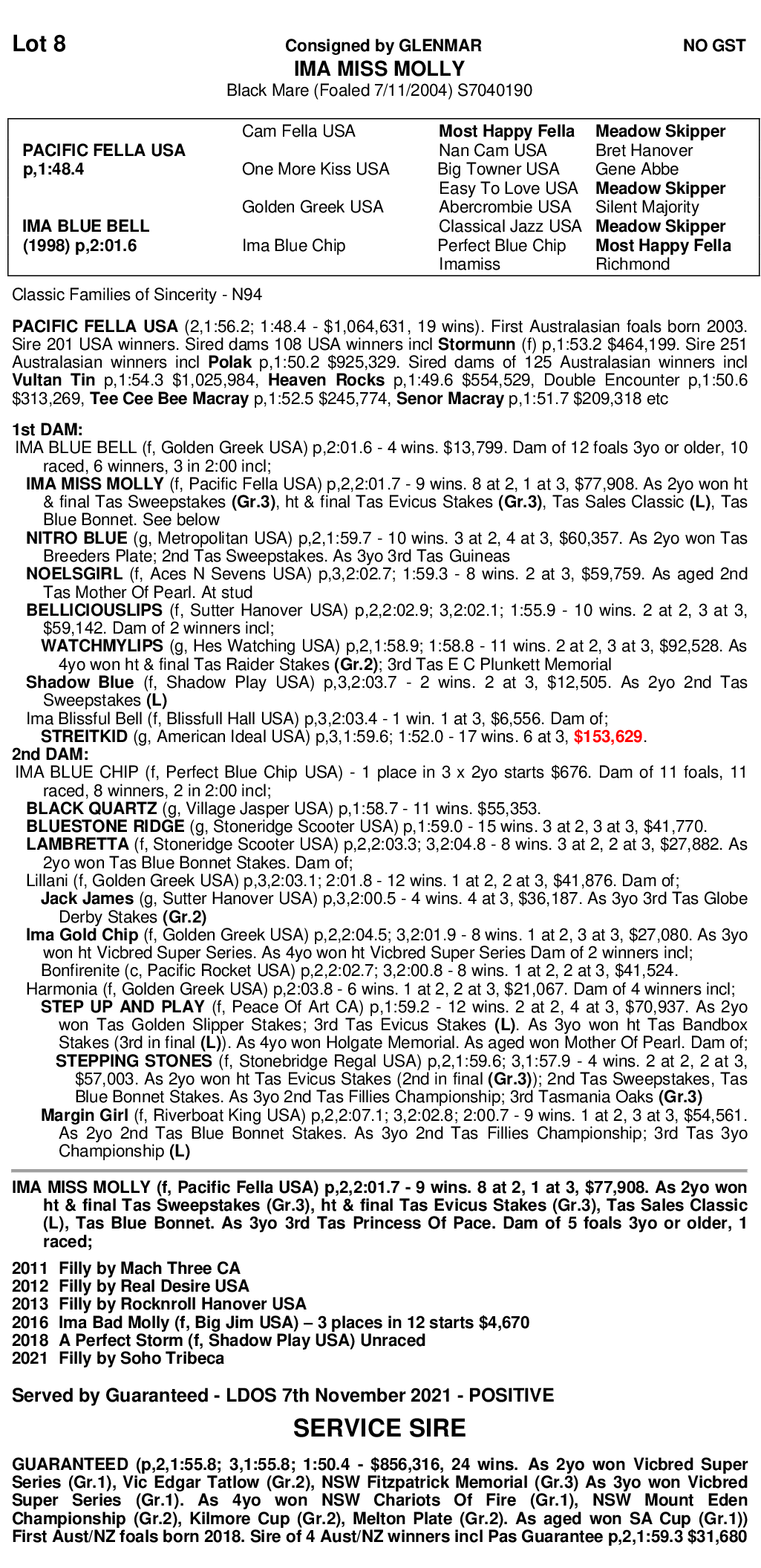 Winner of 9 races (7 straight as 2yo) Tasmanian 2yo filly of the year.