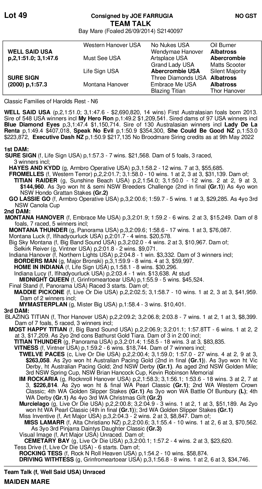 Broodmares who is sister to fromelles mother of titan raider who ran in miracle mile 2022