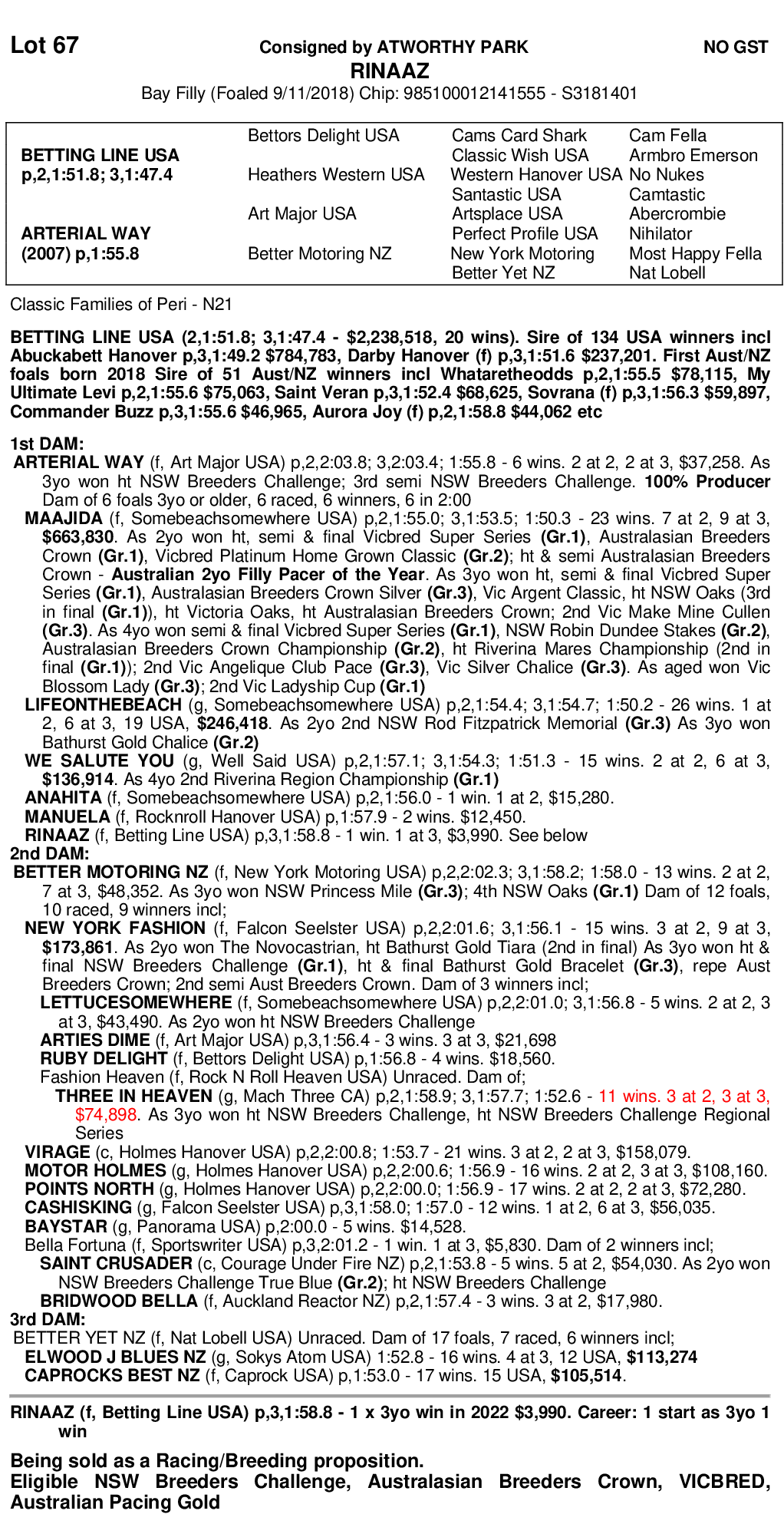 Excellent opportunity to race & breed Rinaaz, who is eligible for NSW owners bonus and paid in full for Futurities including APG.