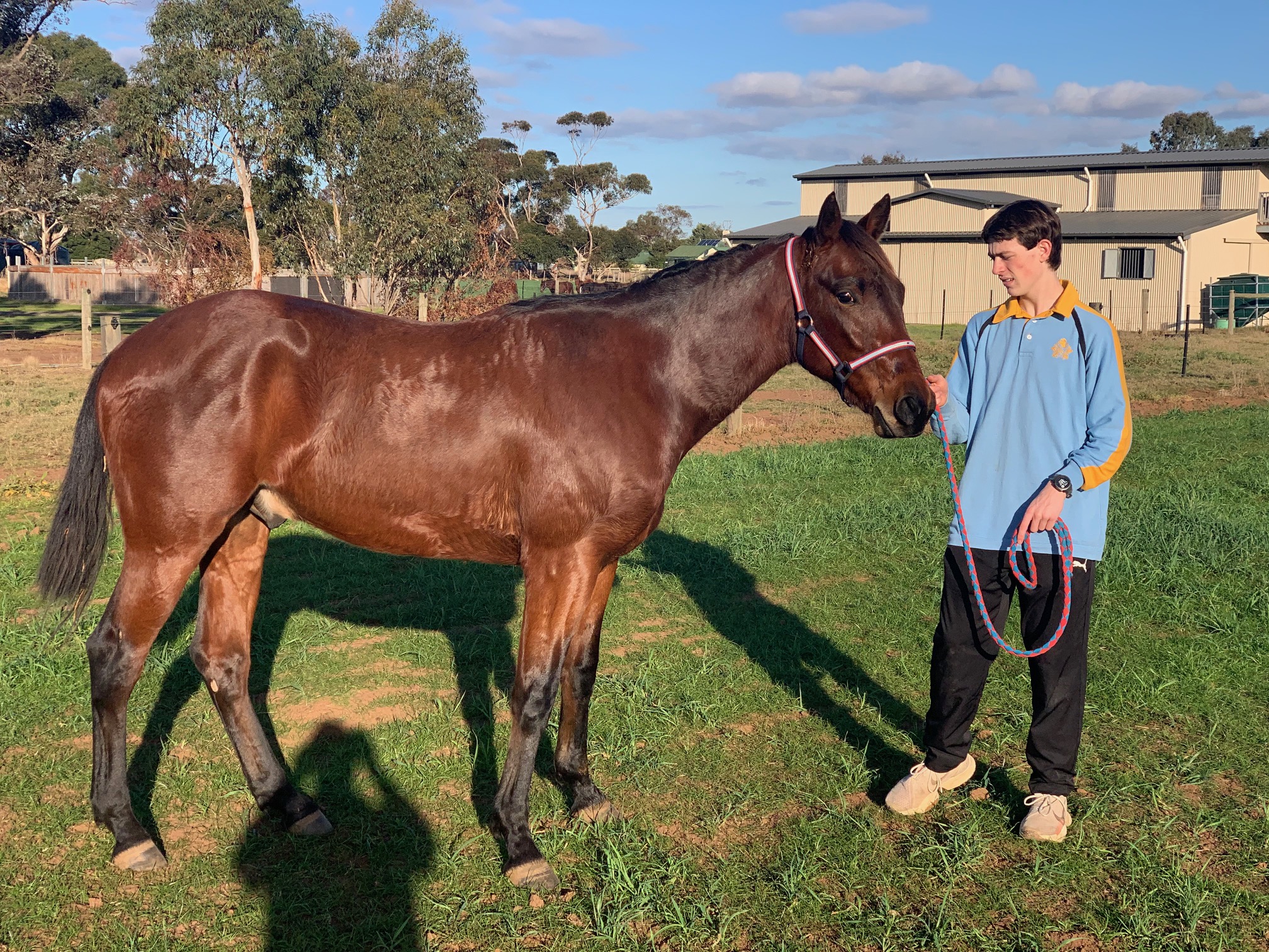 2YO Geldiing. Been broken in and had first prep. Will take time. Beautiful natured, big fella.