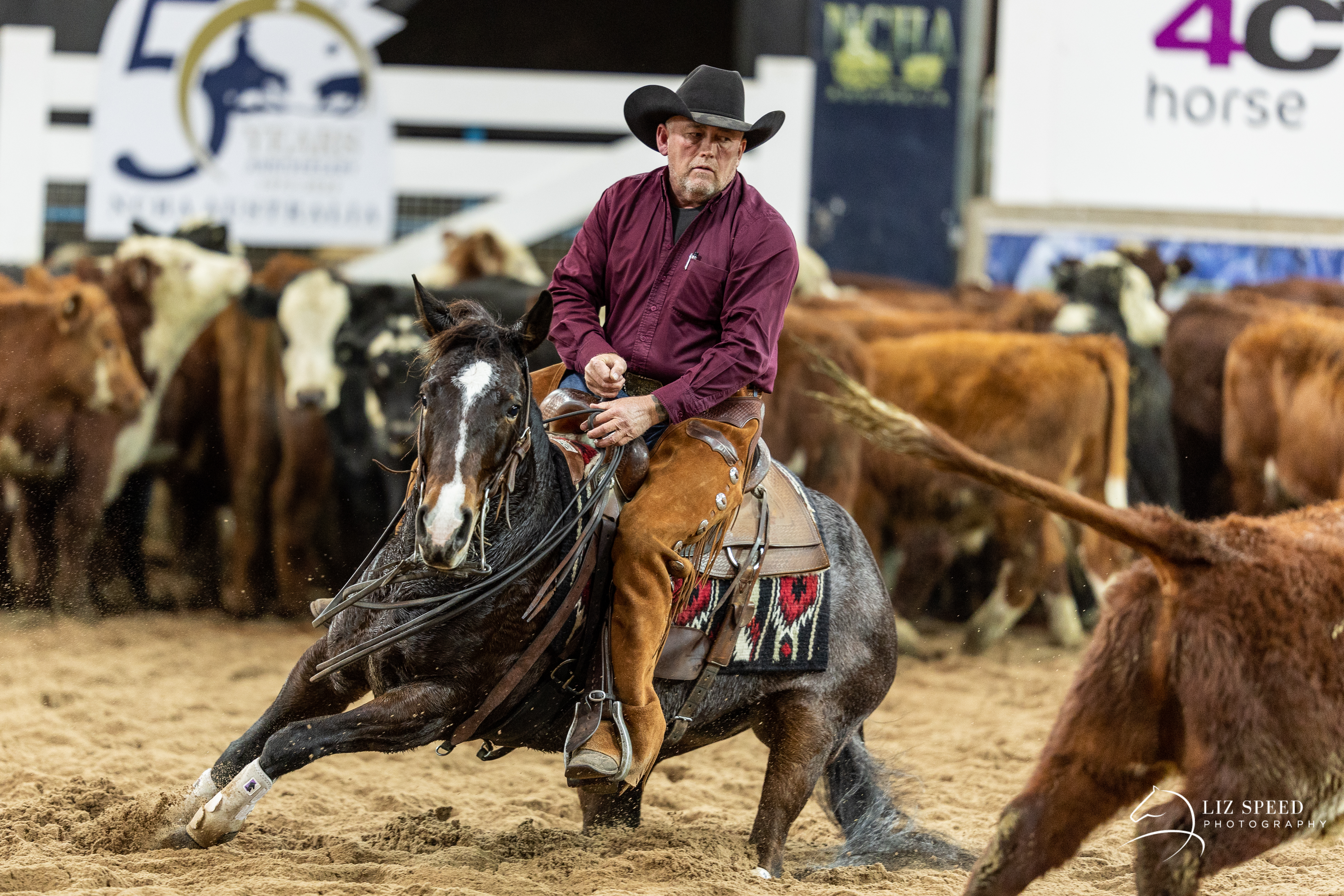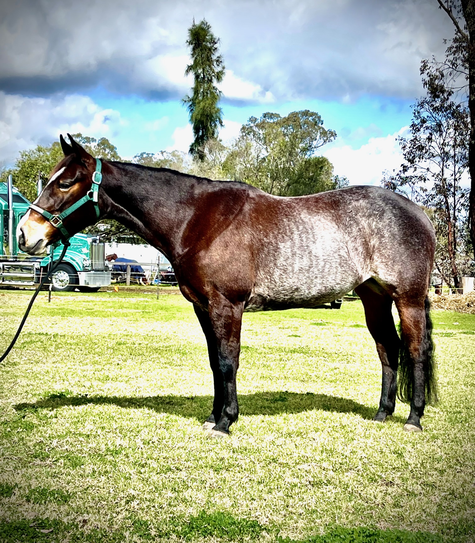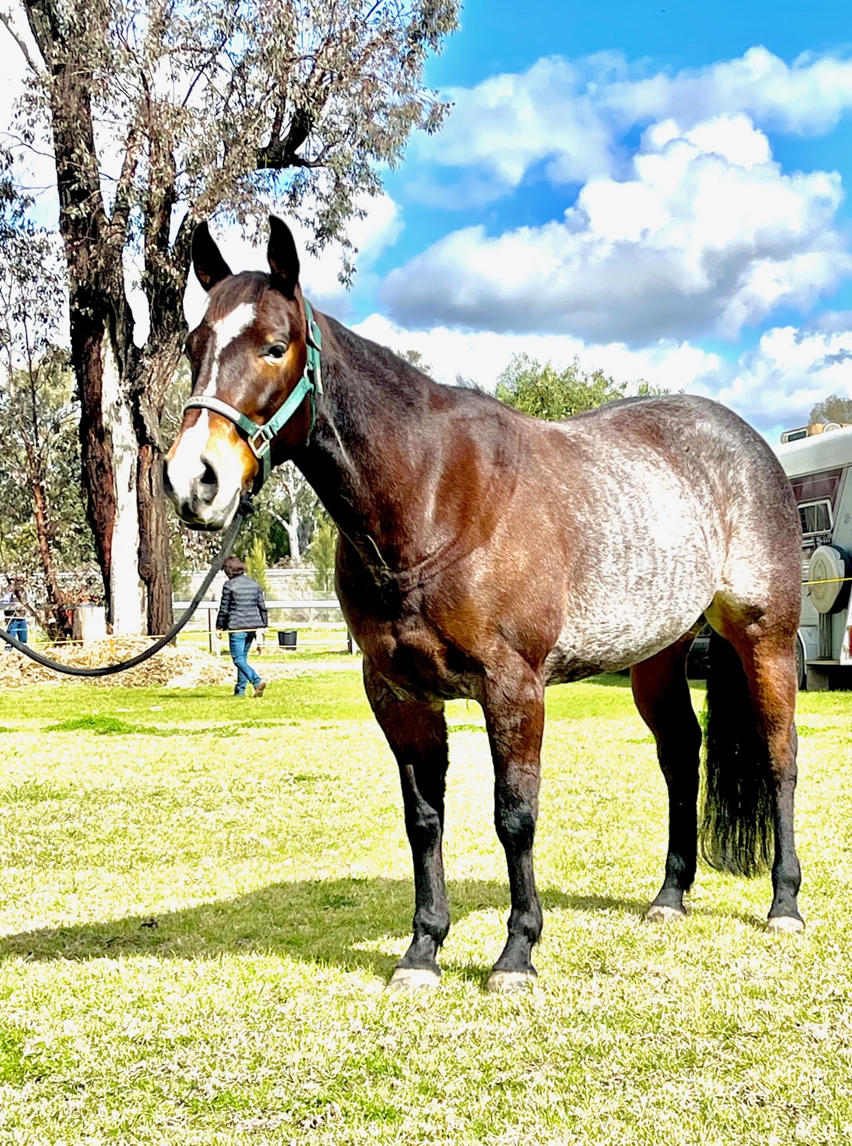 Beautiful big bay roan mare. Completed full cutting program w/Dean Holden. Currently in work w/Mark Buttsworth prior to sale. Quiet easy going mare to suit entire family. Ready to go straight on truck no matter what sport you choose.
