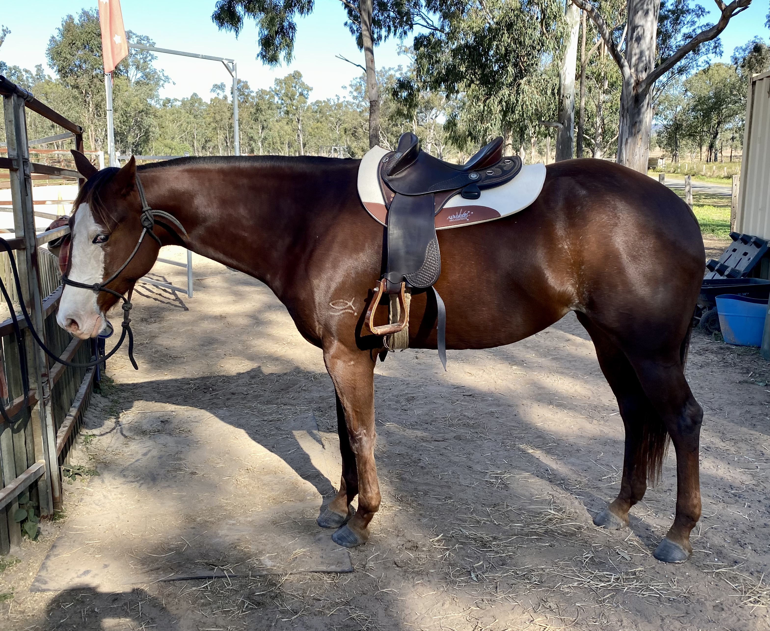 BIG strong mare! Same sire as Beniah. She is cowy..great to tie up, float, clip, wash. Further education with Leah Read prior to sale