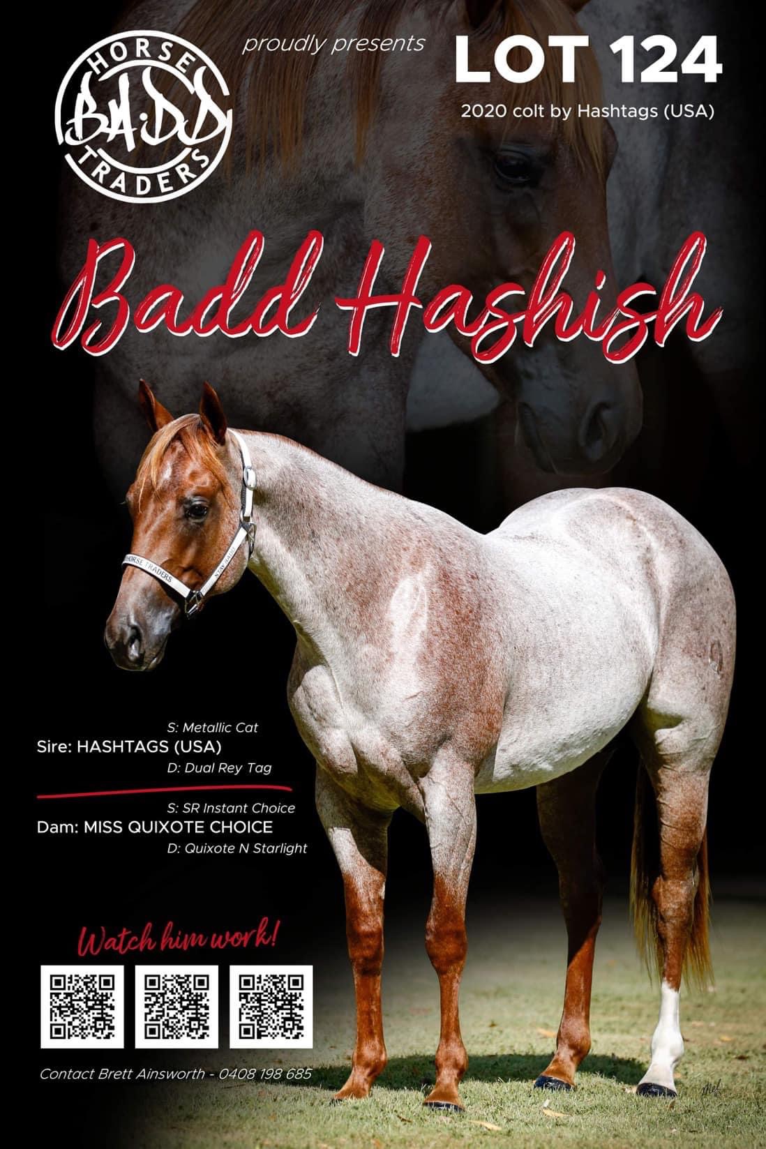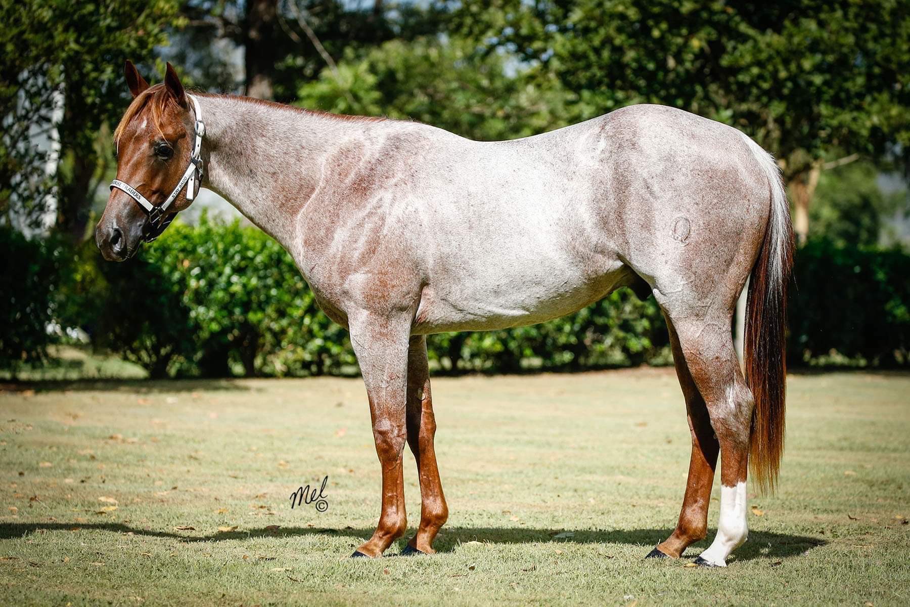 Stunning roan colt by HASHTAGS. Kind natured and easy to handle. Has had a solid foundation put on him. Hashish has been started on the mechanical flag and showing huge potential. His future is bright definitely one not to miss.