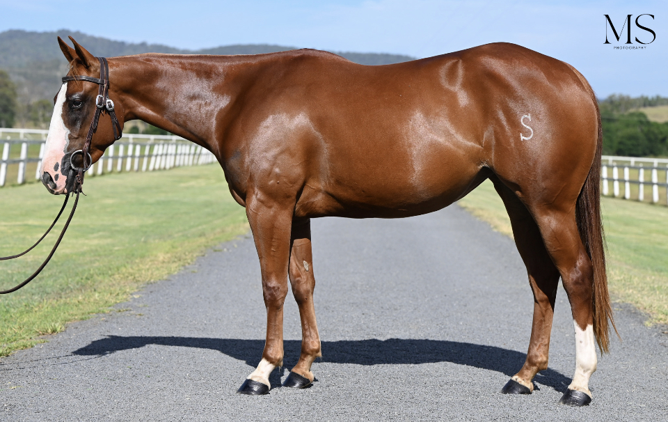 Striking filly with 12 months professional training. Face Time is extremely cowy with a huge stop and a beautiful travelling horse to ride. Great minded with a kind temperament. She will follow in her Sire’s footsteps in the competition arena.