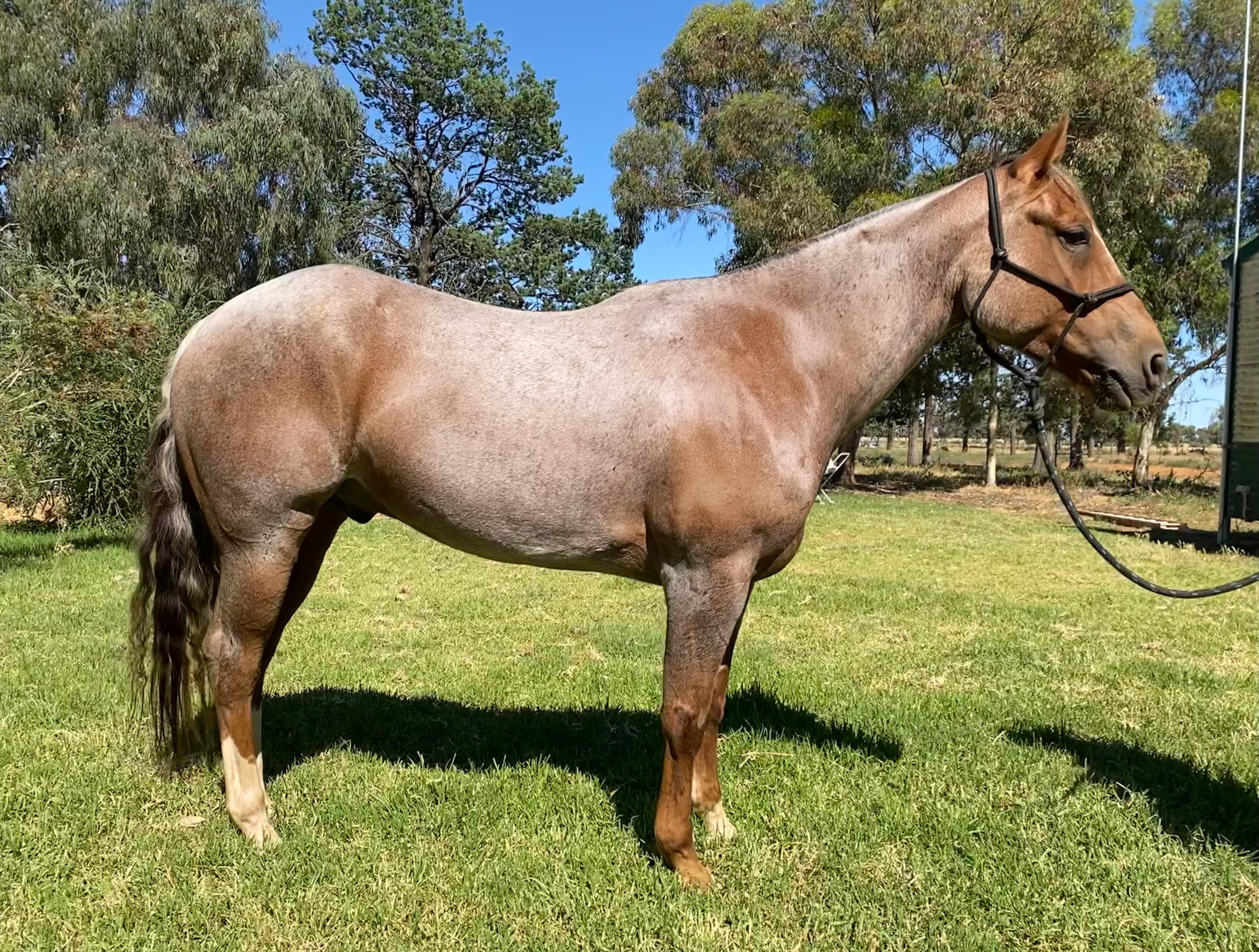 Beautiful Red Roan gelding out of the champion cutting mare Princess Chisum.His sire Sophistcatted Cat is the sire of horses such as Magicool and Dux Duck.He is a lovely quiet gelding that would excell in any cow horse dicsipline.