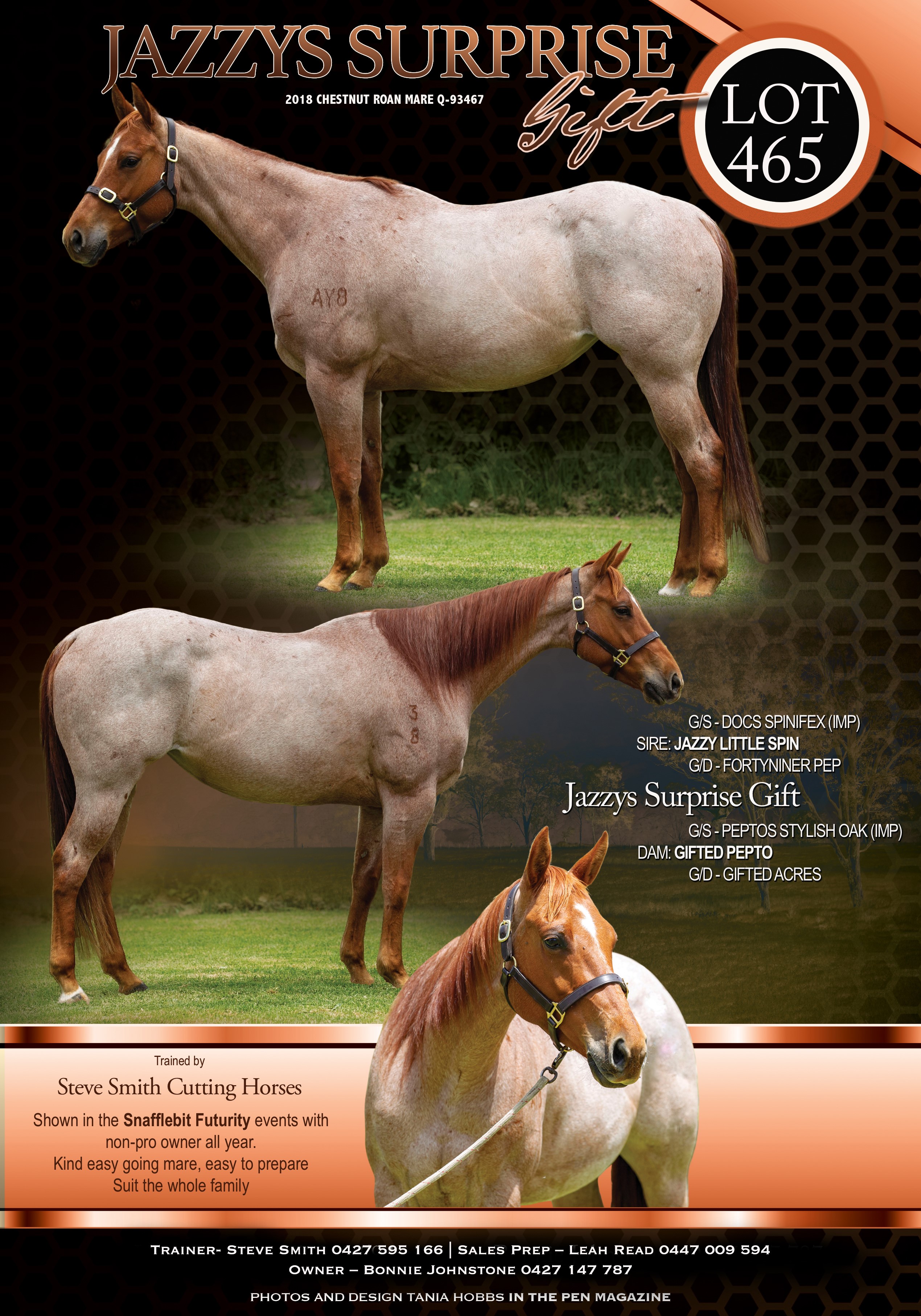 A great broodmare propspect down the track carrying both Peptos Stylish Oak and Acres Destiny on the bottom side and Docs Spinifex and Fortyniner Pep topside.