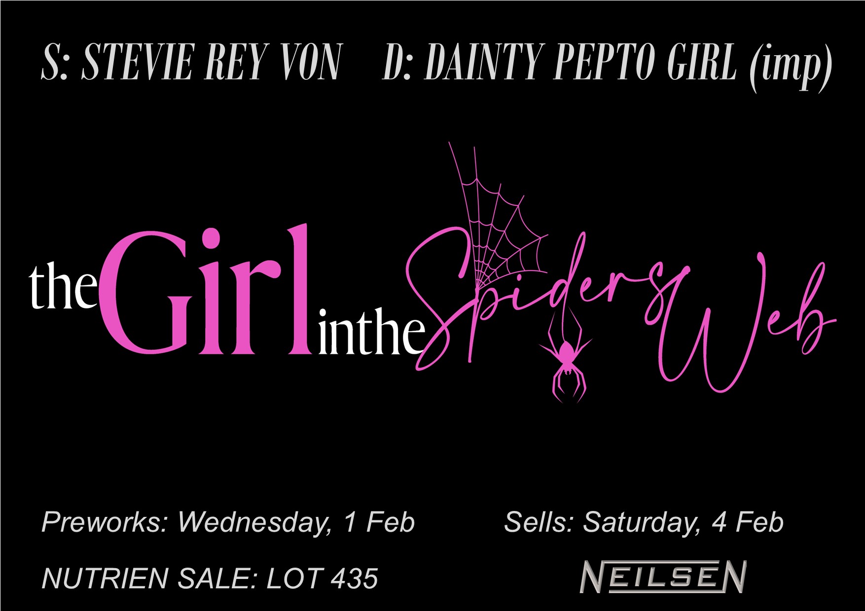 An elegant, trainable red roan mare by Stevie Rey Von, THEGIRLINTHESPIDESWEB is a 3/4 sister to rising Campdrafting stars Pimped Up Cat, (Steve Comiskey) & GIRLWITHTHEDRAGONTATOO (Rob Daley). With great travel and a big stop, THEGIRLINTHESPIDERSWEB is an exciting prospect.