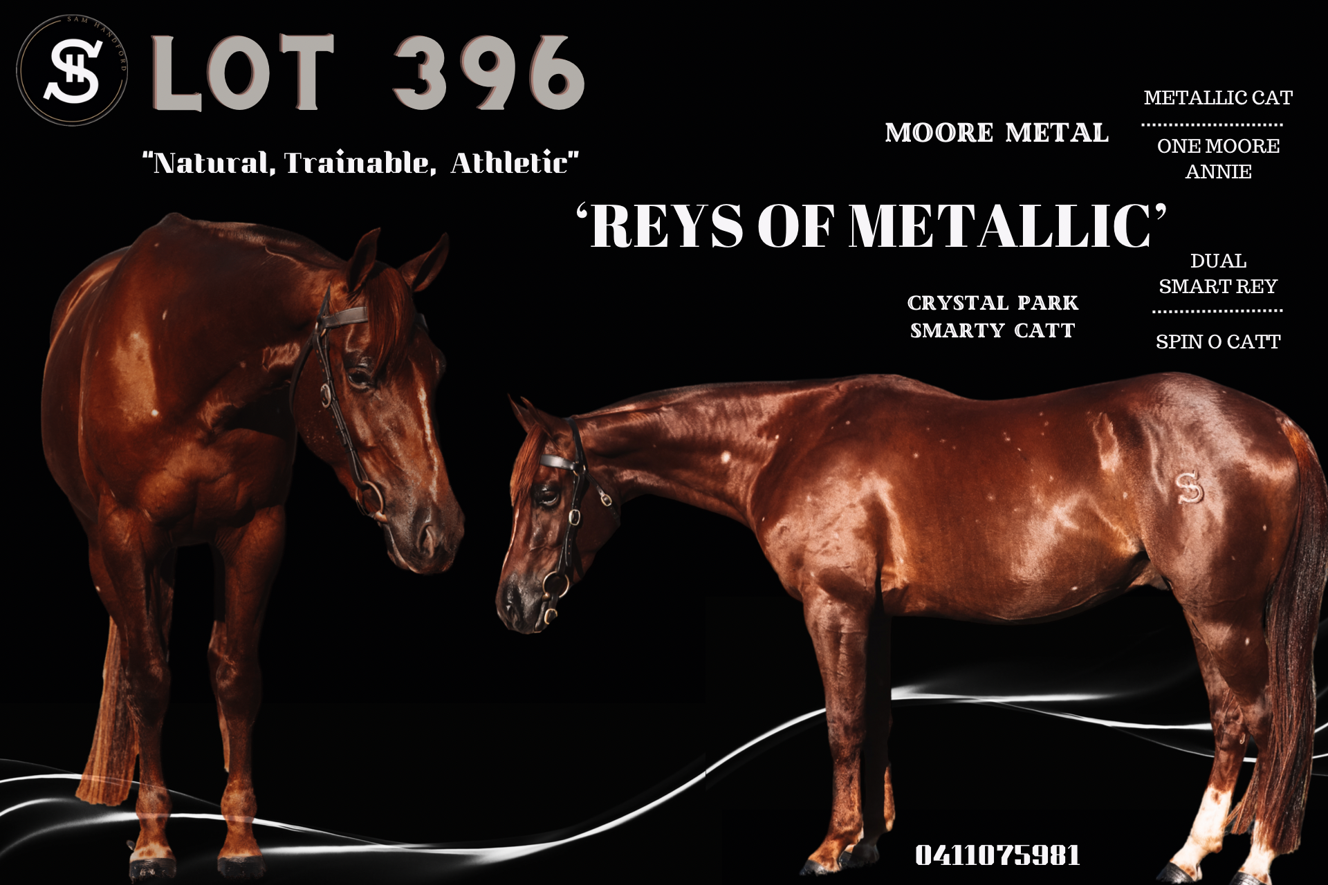 With a mix of Metallic Cat, One Moore Annie, Dual Smart Rey, and Sophisticated Catt, this horse is bred to work a cow. His temperament is unmatched. He is quiet, safe, and clever. One for the whole family.