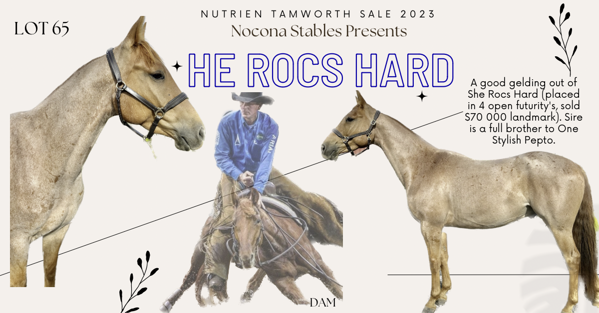 A good gelding out of She Rocs Hard (placed in 4 open futurity's, sold $70 000 landmark). Sire is a full brother to One Stylish Pepto.