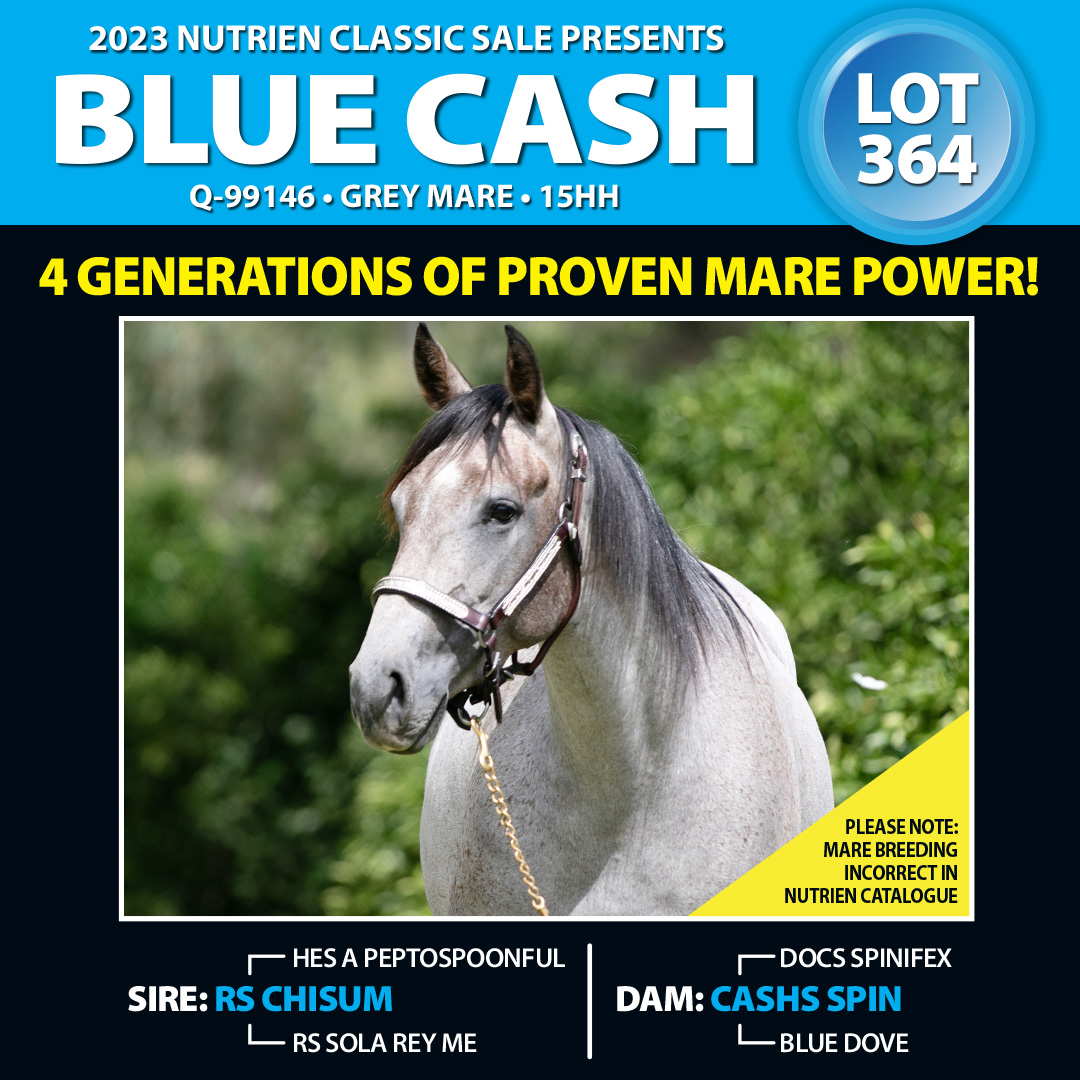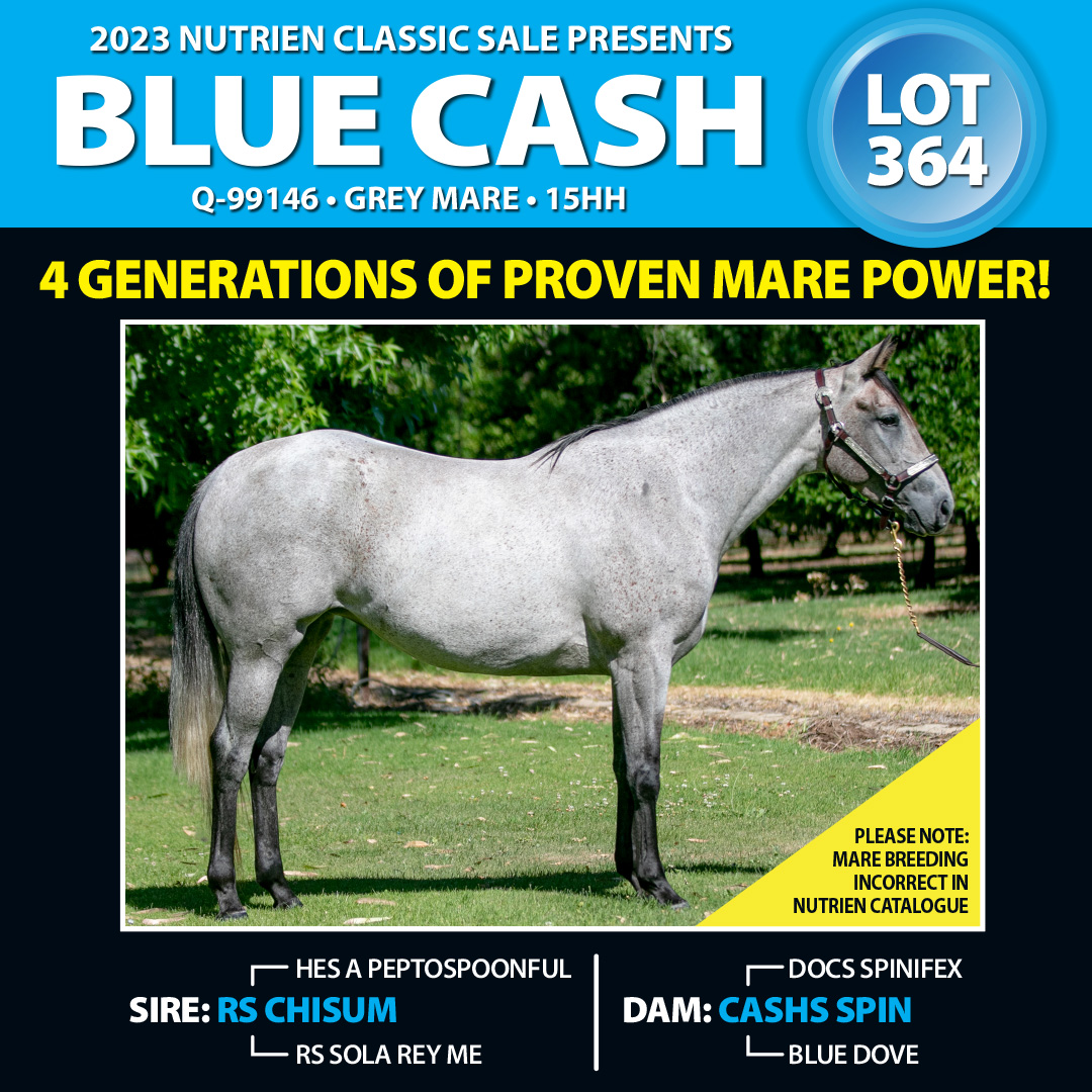 Extremely rare opportunity to purchase one of the last daughters out of the deceased dam "Cashs Spin" truly world class breeding. 4 generation of exceptional breeding, this mare is a full sister to Chisums Cash & Chisums Blue Spin