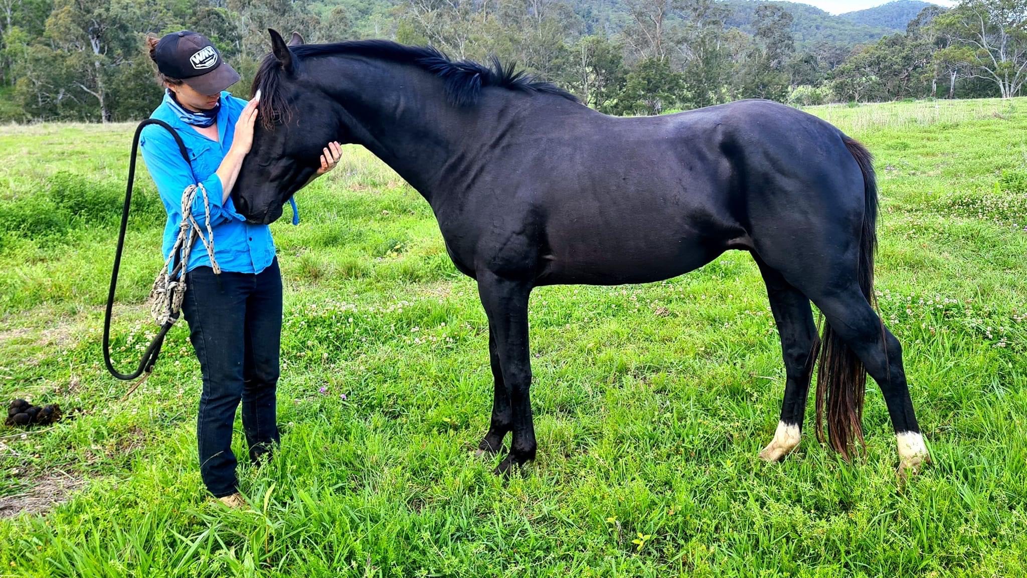 A black beauty for the entire family. Bombproof, soft, clever, and ready to compete in any field. All the basics are done just get on and enjoy. Proven mare-line, siblings have won State, led and working, competitions.