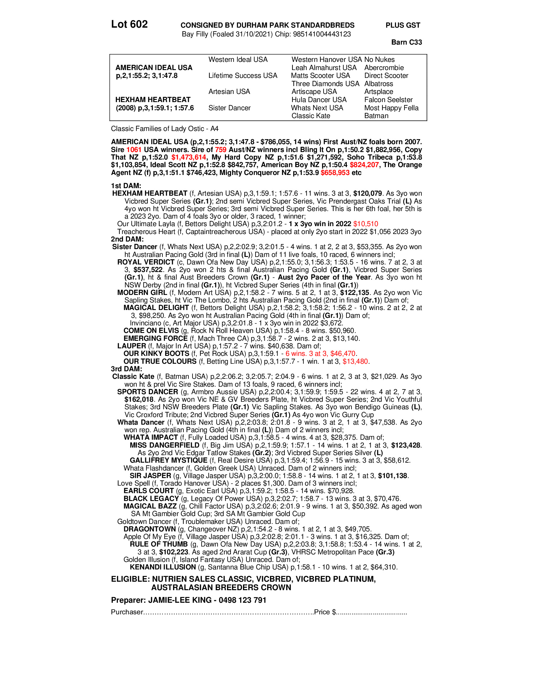 2021 FILLY OUT OF HEXHAM HEARTBEAT