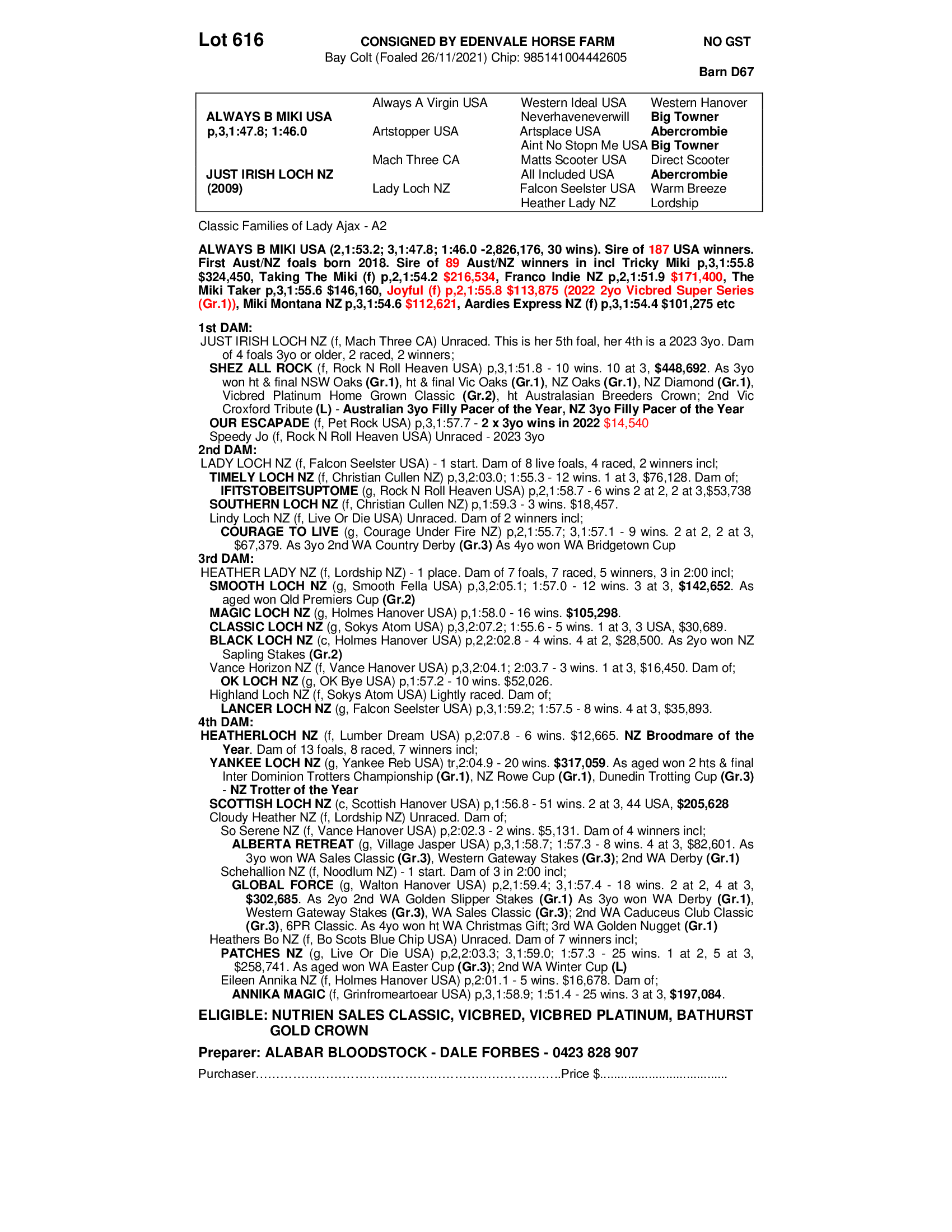 ALABAR BLOODSTOCK - DALE FORBES