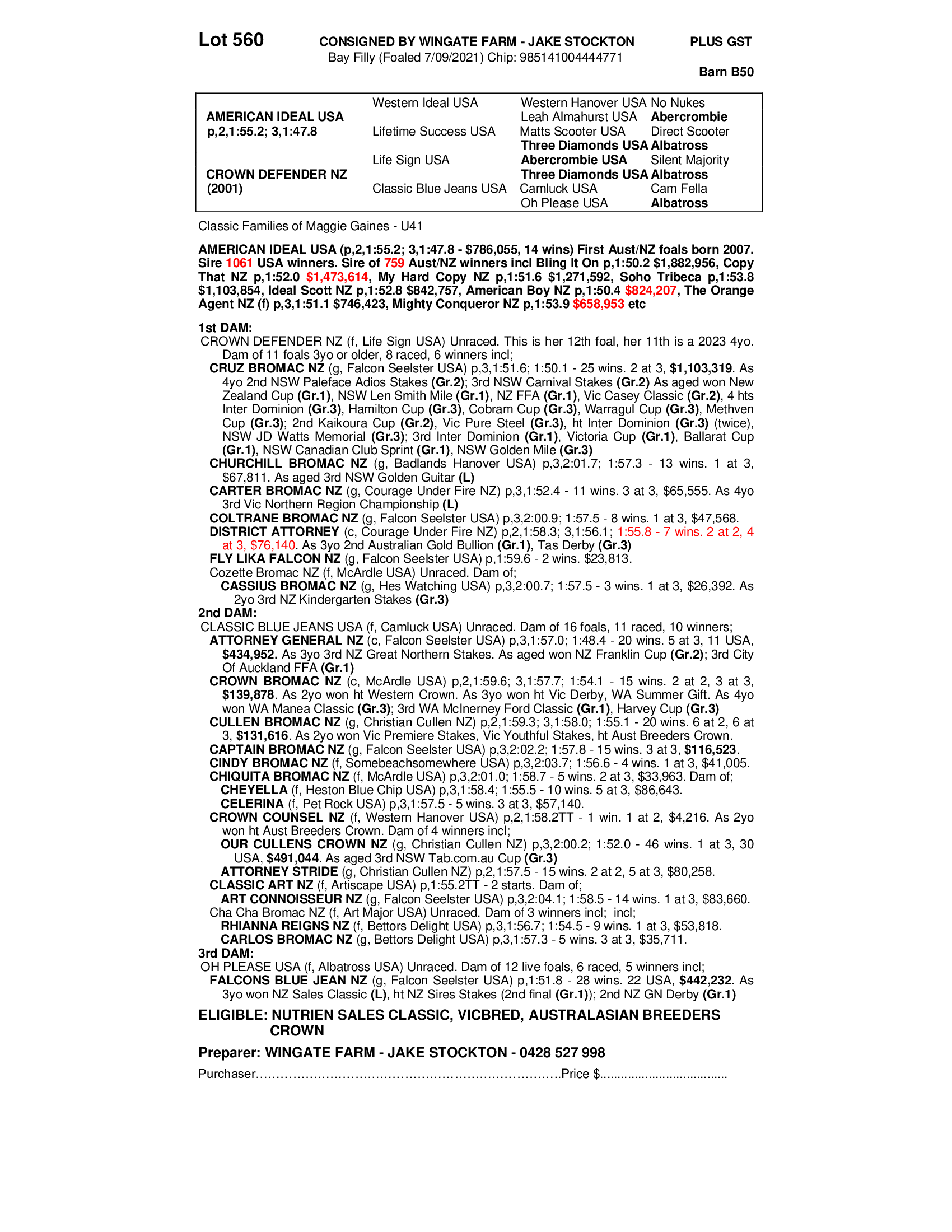 2021 FILLY OUT OF CROWN DEFENDER NZ