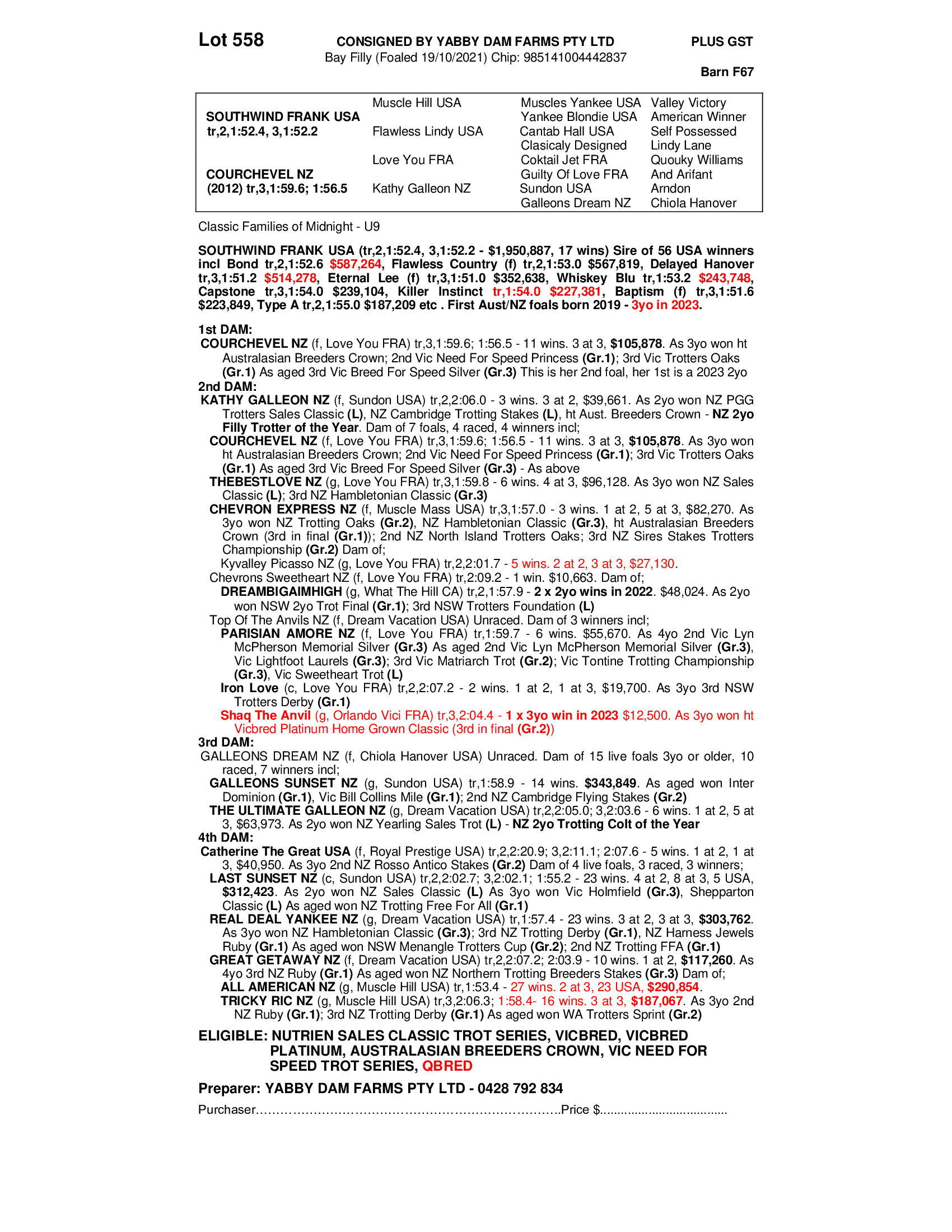 2021 FILLY OUT OF COURCHEVEL NZ