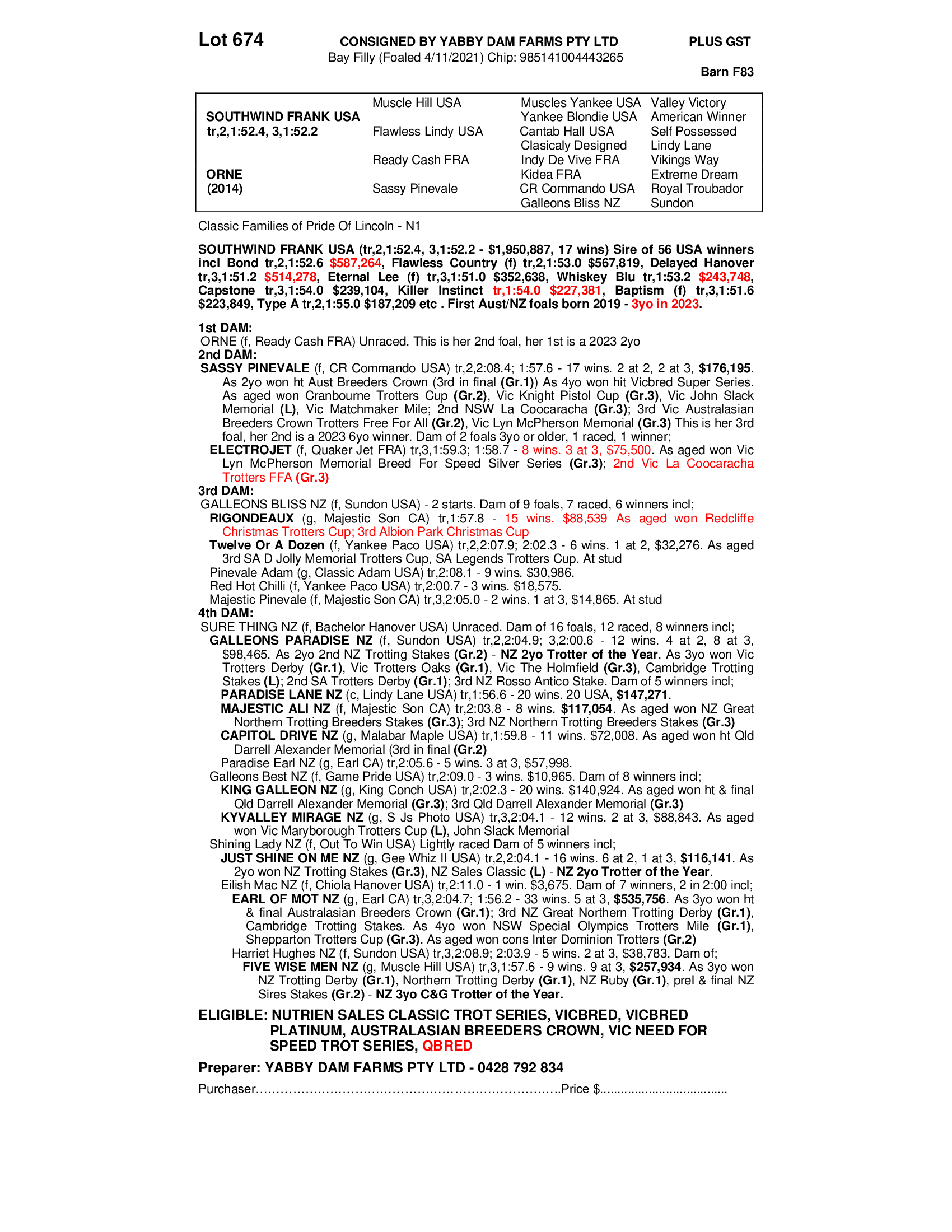 2021 FILLY OUT OF ORNE