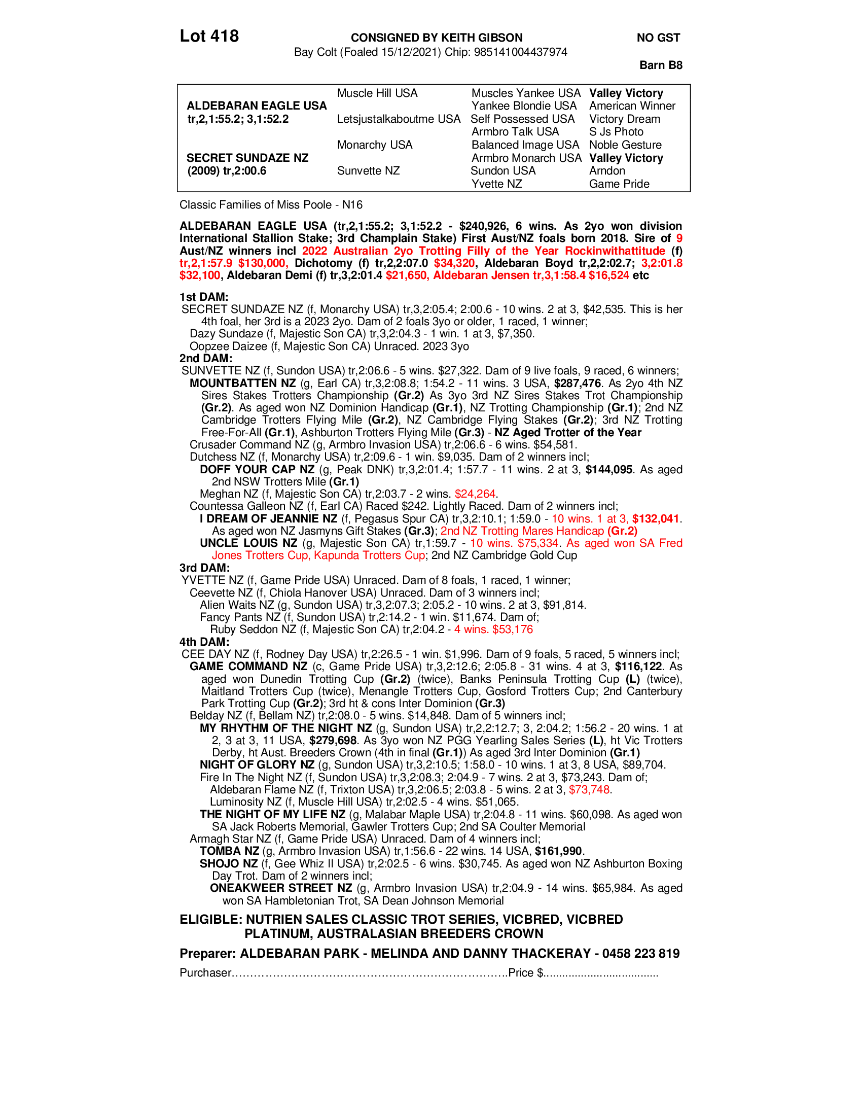 ALDEBARAN PARK - MELINDA AND DANNY THACKERAY