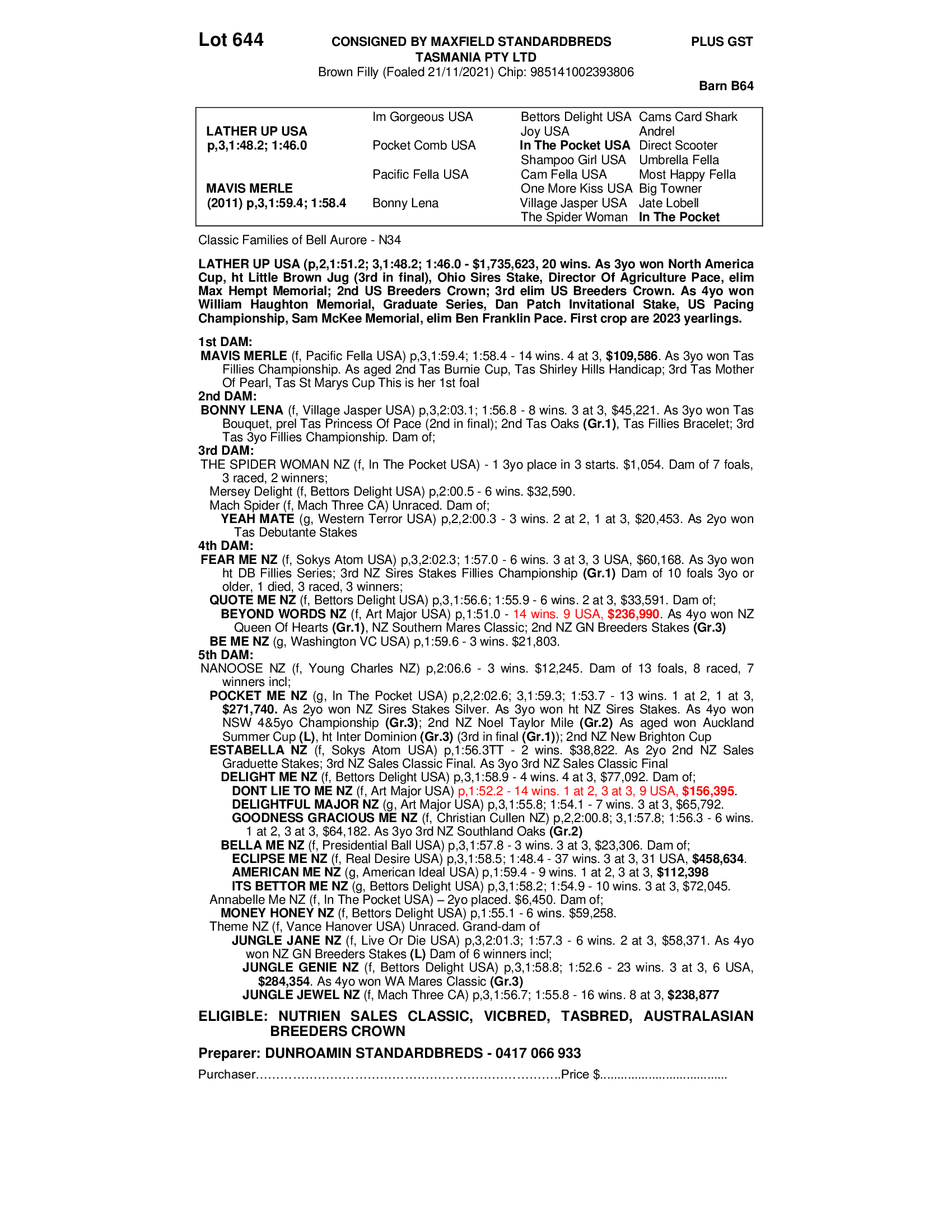 MAXFIELD STANDARDBREDS TASMANIA PTY LTD