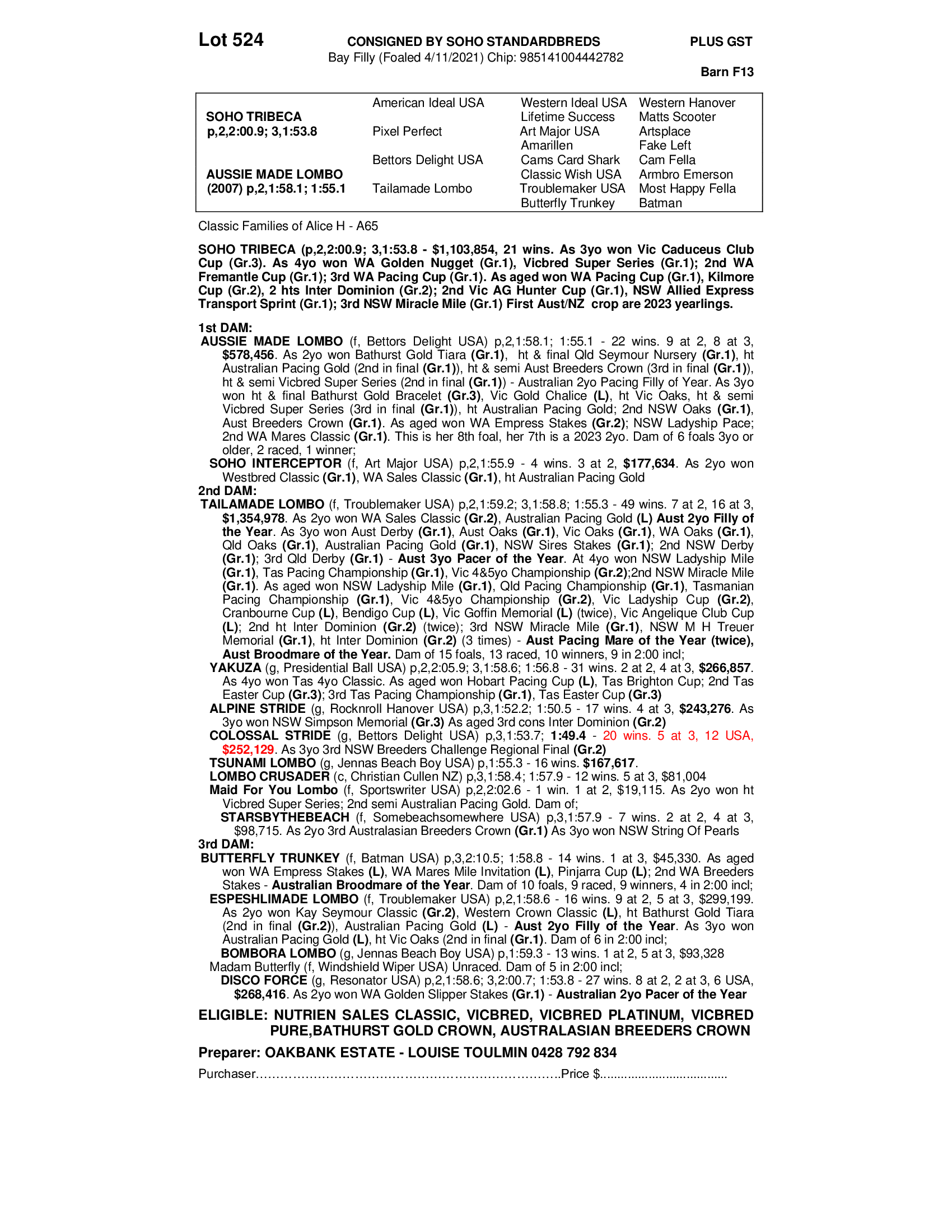 2021 FILLY OUT OF AUSSIE MADE LOMBO