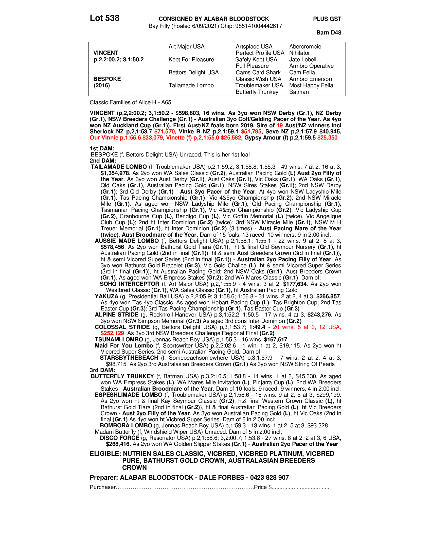 2021 FILLY OUT OF BESPOKE