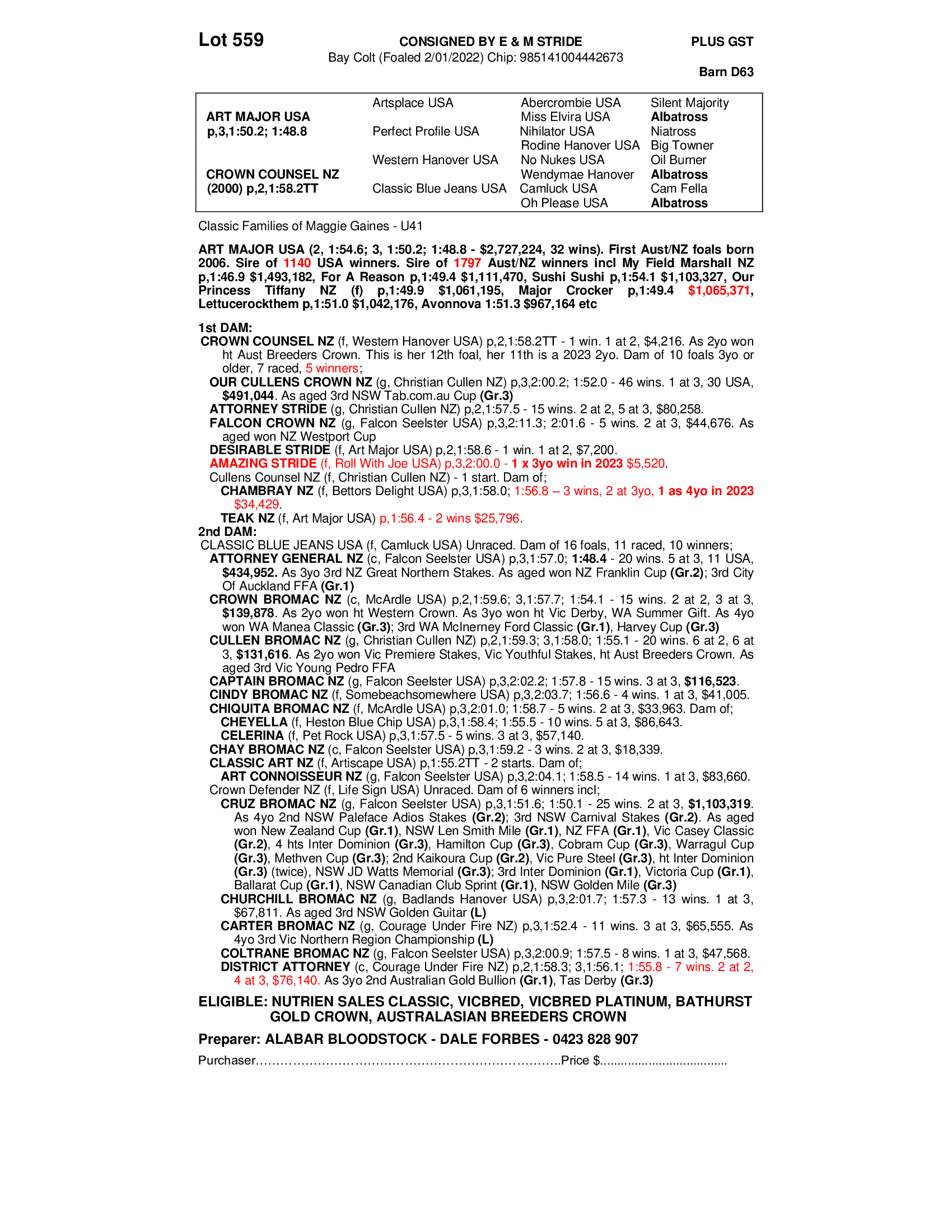 ALABAR BLOODSTOCK - DALE FORBES