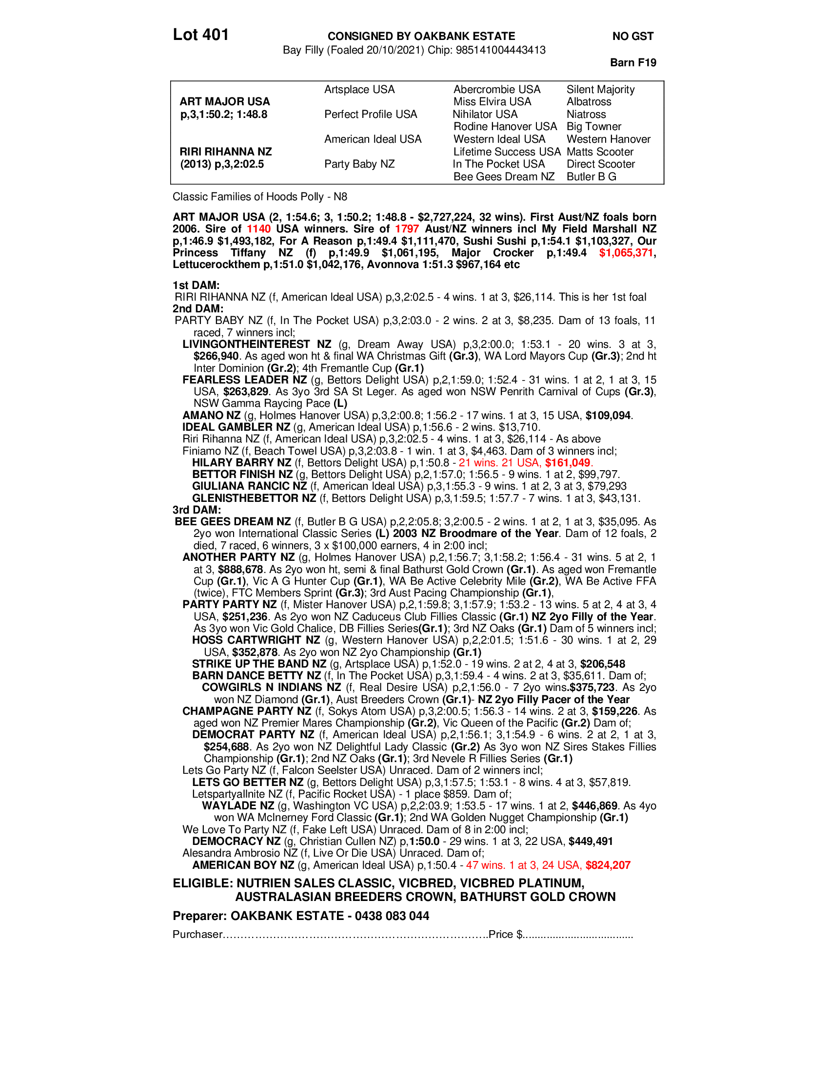 2021 FILLY OUT OF RIRI RIHANNA NZ