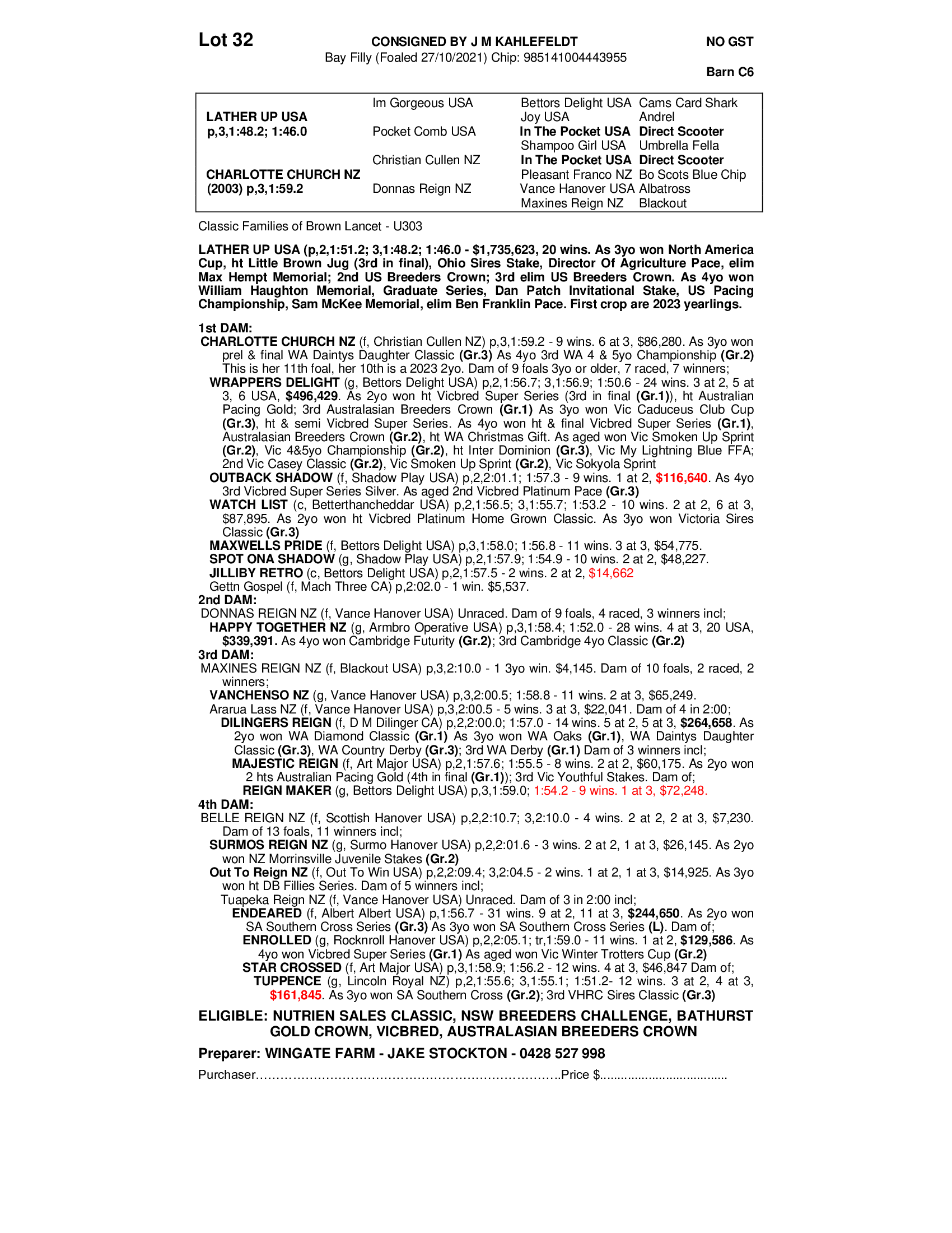 2021 FILLY OUT OF CHARLOTTE CHURCH NZ