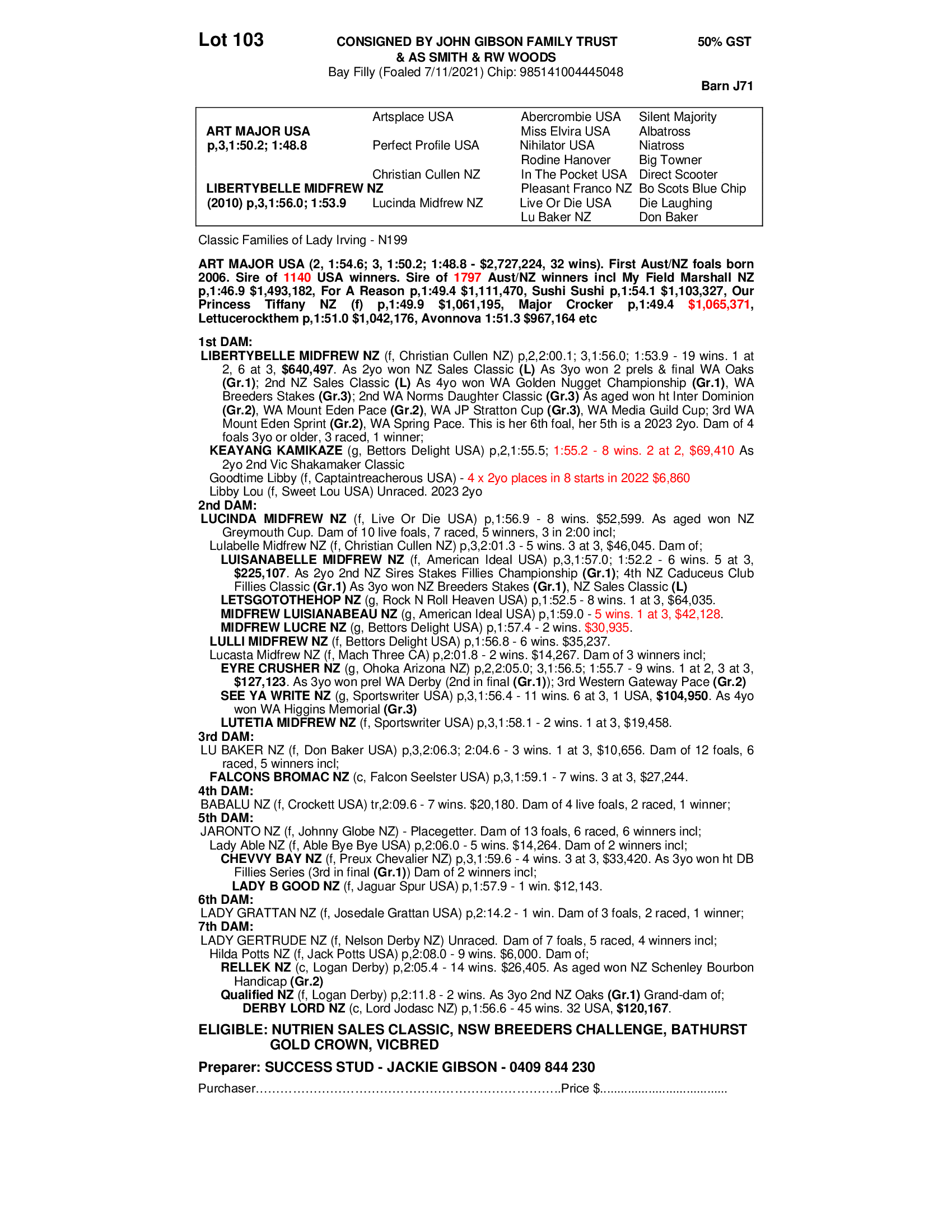 2021 FILLY OUT OF LIBERTYBELLE MIDFREW NZ