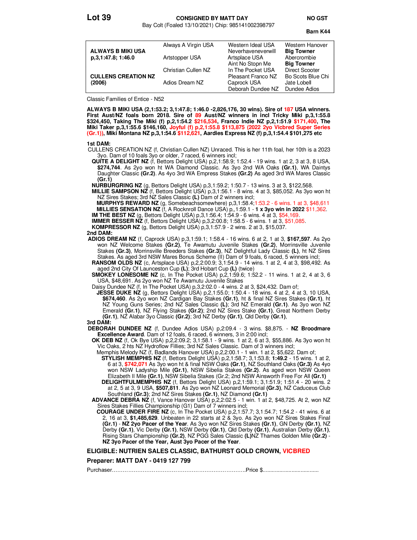 2021 COLT OUT OF CULLENS CREATION