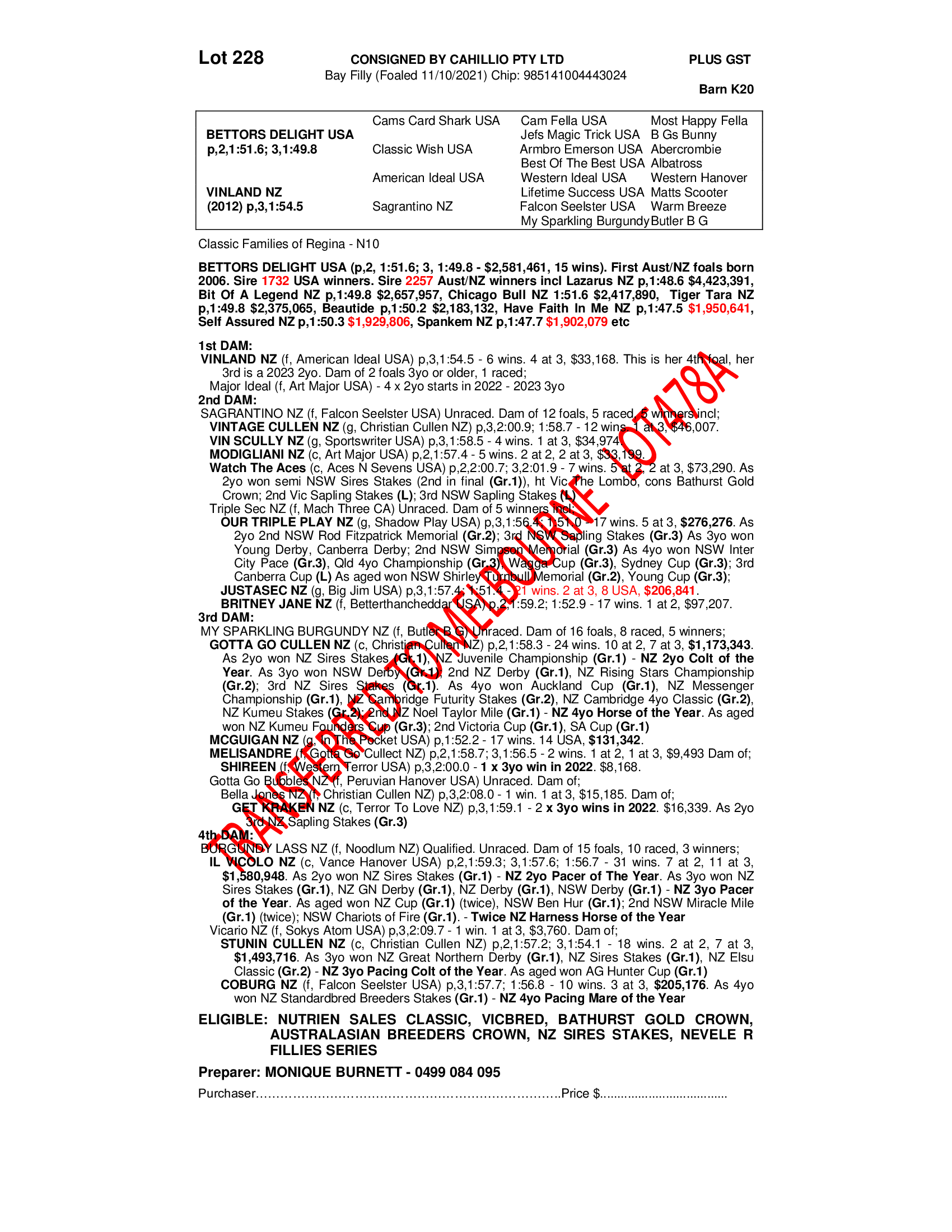 2021 FILLY OUT OF VINLAND