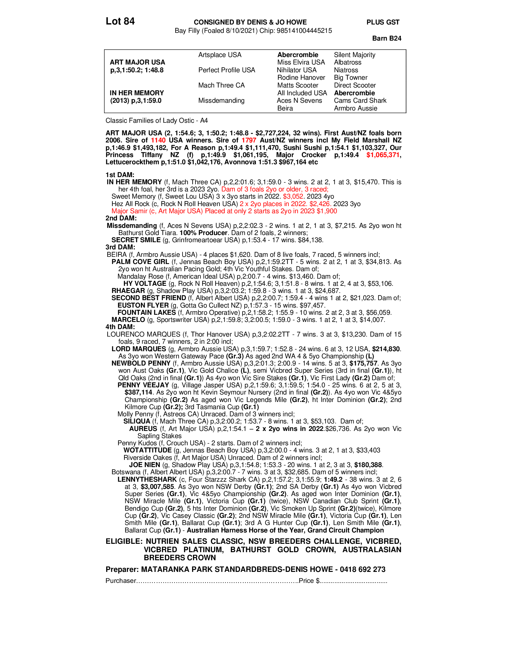 MATARANKA PARK STANDARDBREDS-DENIS HOWE