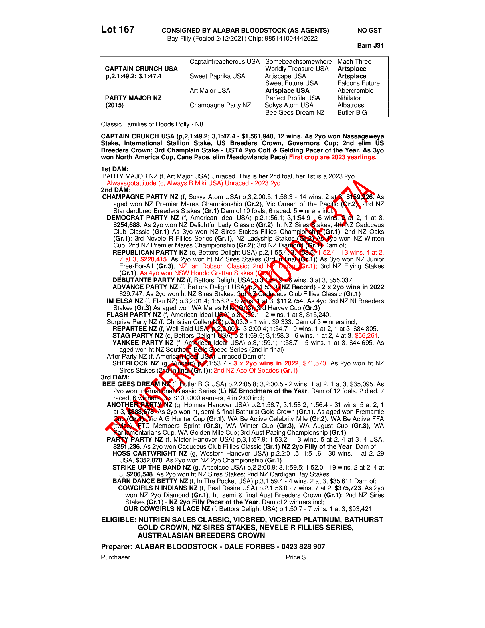 2021 FILLY OUT OF PARTY MAJOR NZ