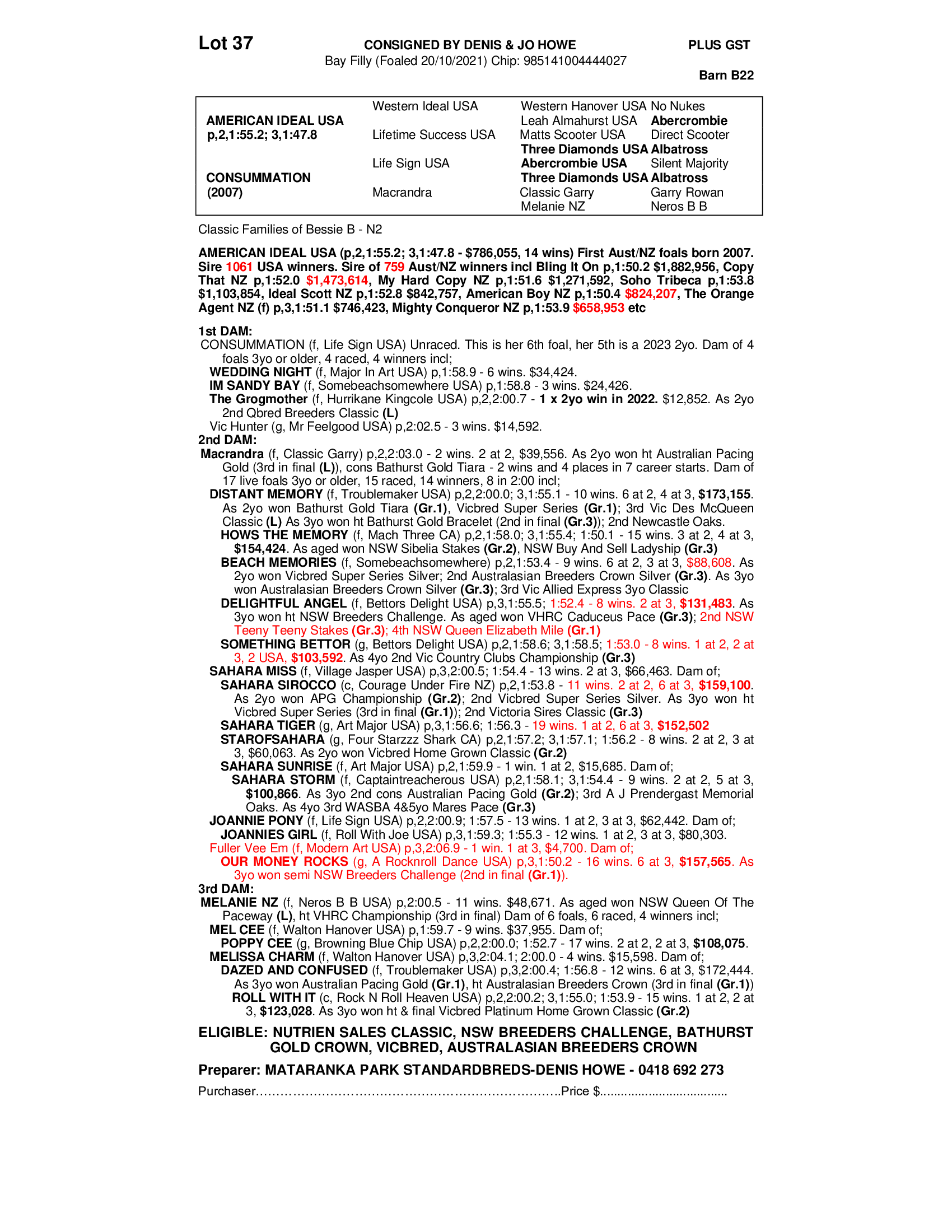 MATARANKA PARK STANDARDBREDS-DENIS HOWE