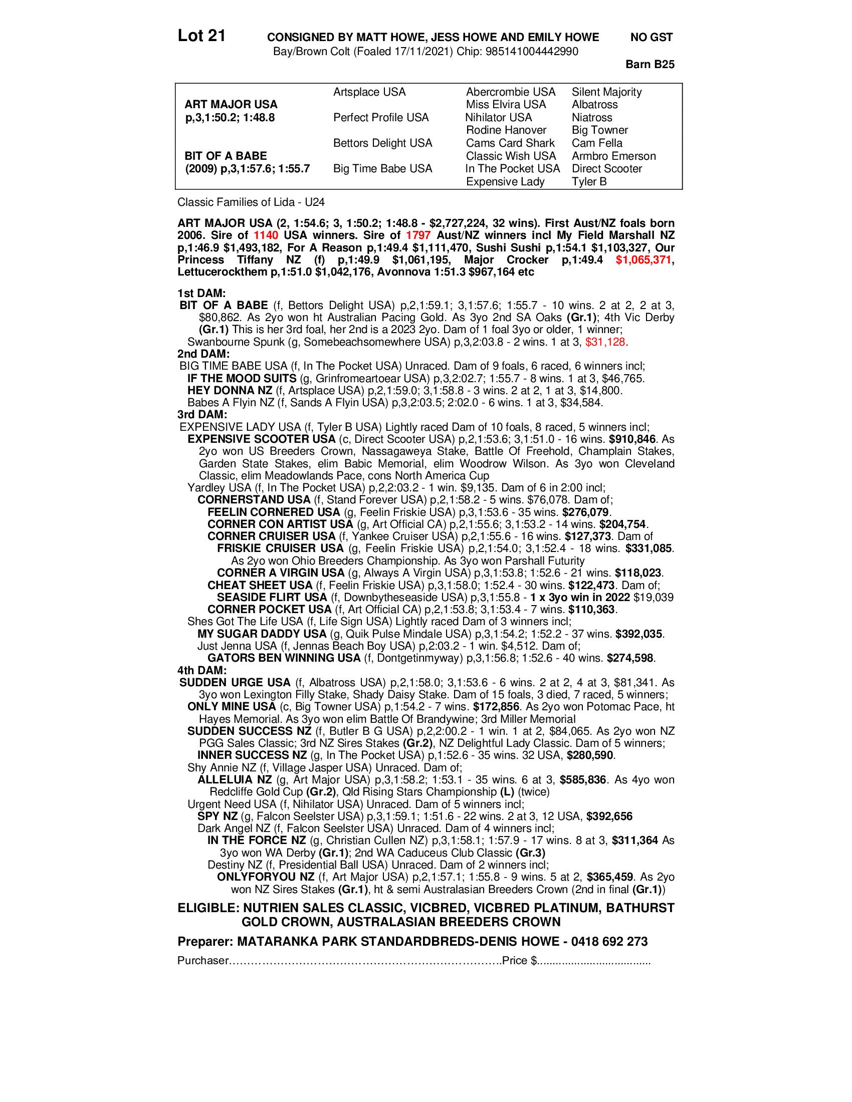 MATARANKA PARK STANDARDBREDS-DENIS HOWE