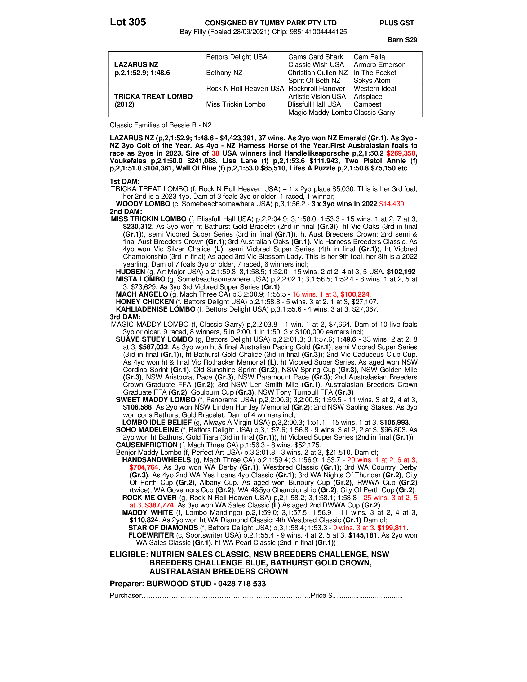 2021 FILLY OUT OF TRICKA TREAT LOMBO